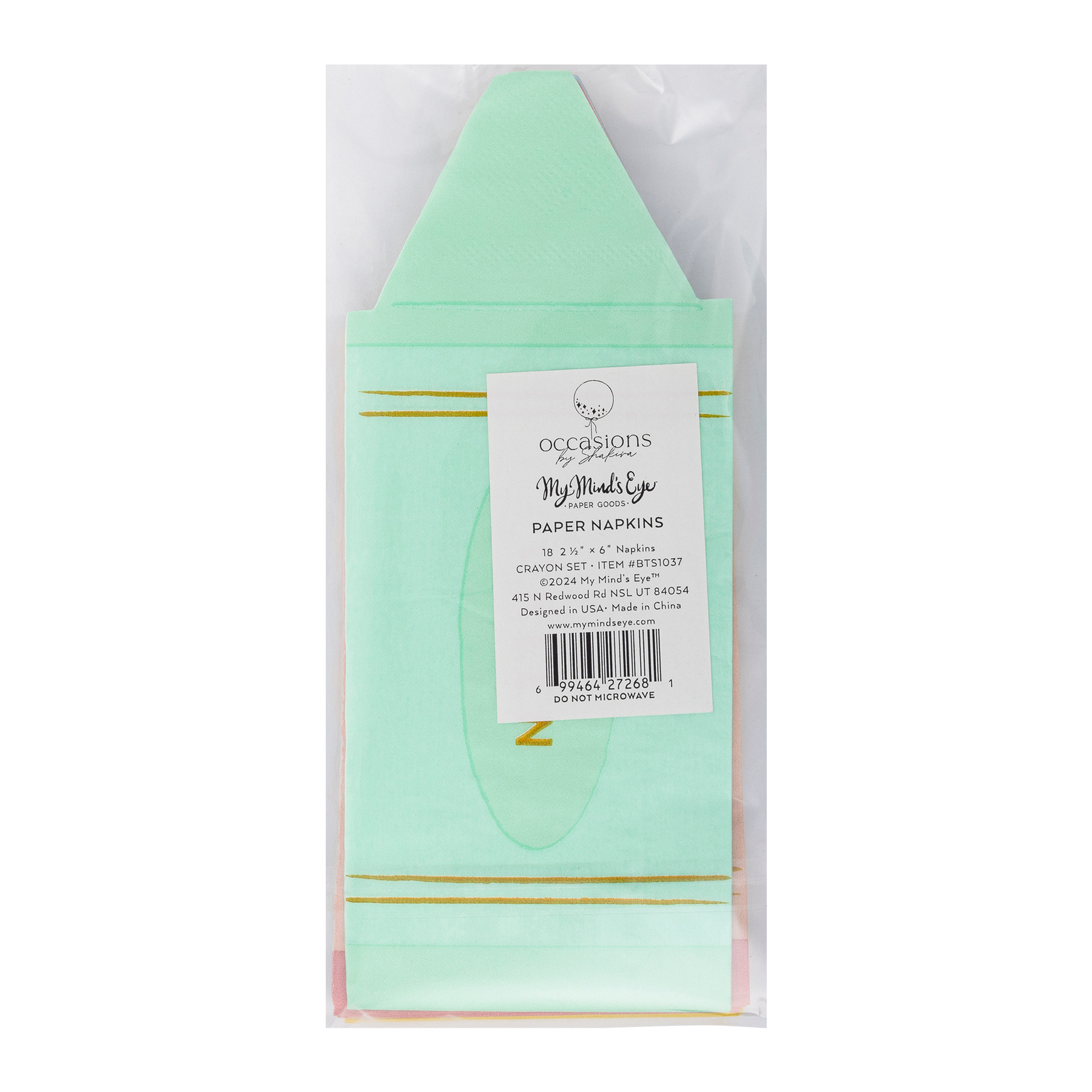 Add a pop of fun to your table with our Crayons Napkin Set. These unique napkins are designed to look like crayons, adding a playful touch to any occasion. Don't just use them to wipe your mouth, use them to inspire your inner child! Shakira Patterson is the mama of four and active duty military spouse behind OccasionsbyShakira.com and the Occasions Bin™ tradition you've seen all over social media. Occasions Bins are baskets filled with seasonal items, that are intentionally kept out in the heart of your home, to make daily meals or snacks a bit more magical. Follow along with the #occasionsbin hashtag and share your memory making with this fun collection." • 18 3.25 x 7.75 inch paper napkins with foil accents