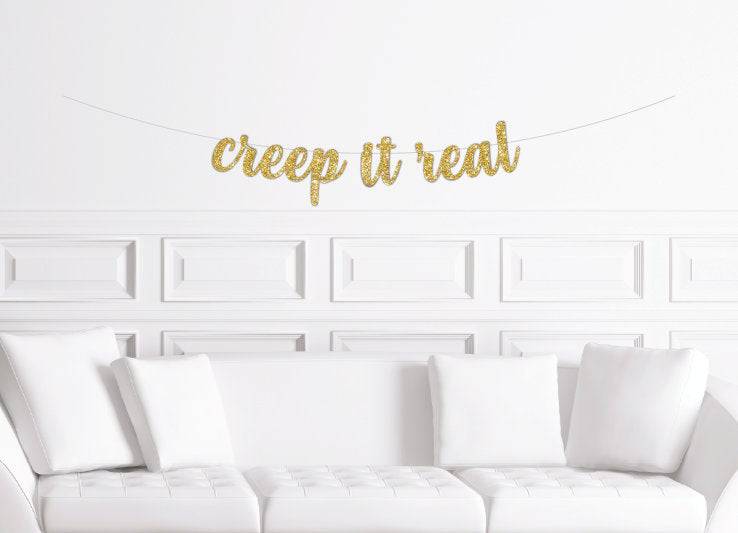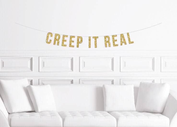 This listing is for one paper, glitter script banner of the popular Halloween party phrase: