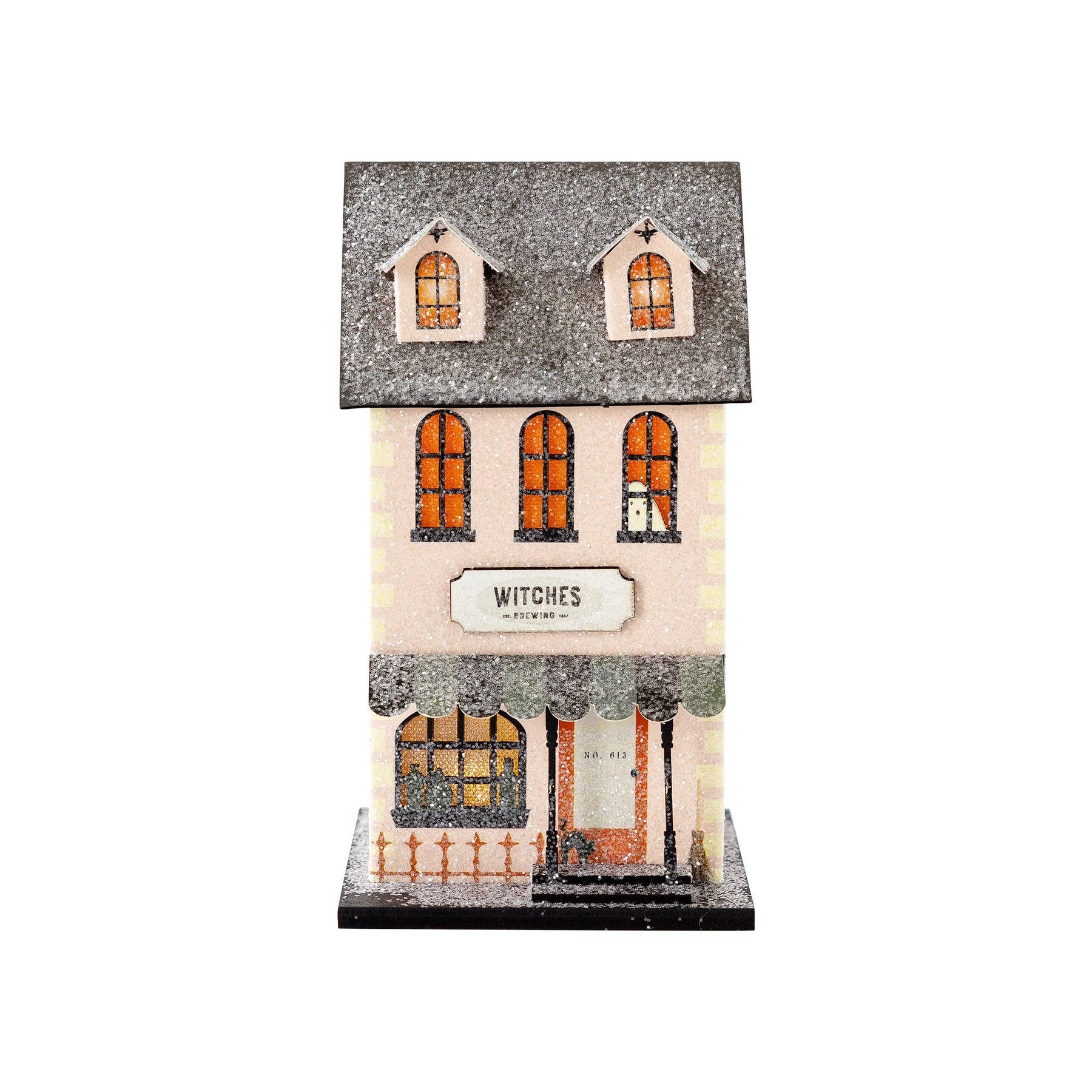 Get ready for some wicked fun with our Witches Brewing haunted village house. Imagine the witches working their magic, brewing up some spooky potions. Perfect for all your Halloween decorating needs.