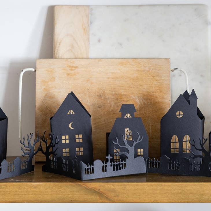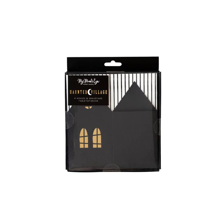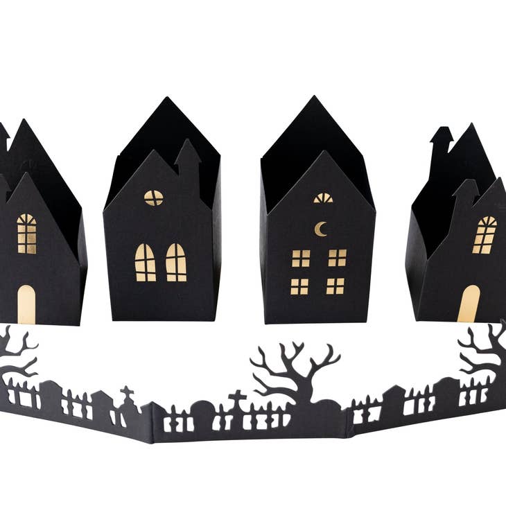 Transform your table into a chilling spectacle with this eerie village. Complete with four-dimensional houses adorned in shimmering gold accents and a spine-chilling fence, this decorative set will create an atmosphere of frightful delight on any table or countertop, providing you and your beloved ghouls with endless enjoyment throughout the entire month of October.
