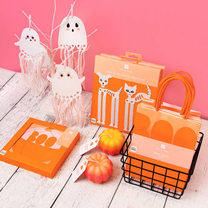 Simple and effective, let the kids make their own Halloween decorations with these cute plastic free ghosts. In each pack there are 12 ghosts in three designs, enough for everyone, young and old to have a go. Cut then tie the pieces of the yarn through the pre-cut holes and watch the ghosts come to life! Hang up around the home or string together as a garland using a length of yarn.