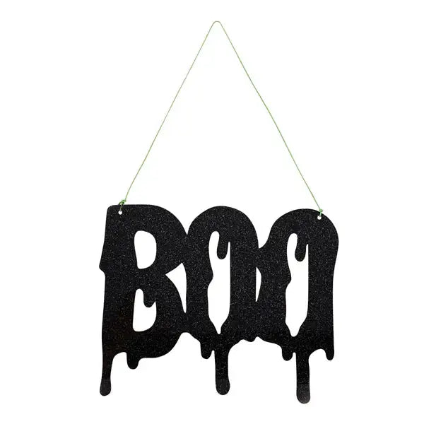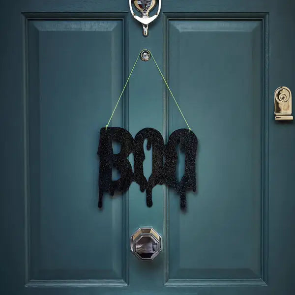 Add a sparkling touch of spooky fun to your Halloween decor with this 'Boo' black glitter acrylic sign. Its shimmering finish catches the light, creating a festive and playful vibe perfect for welcoming ghosts and ghouls alike.