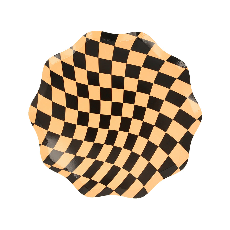 Take a look at these fantastic Halloween plates! The swirling checkered design, featuring a mix of orange, white, and pink colors, gives off a groovy psychedelic vibe reminiscent of the 60s. These plates can be used as both side plates and cocktail plates, making them an excellent addition to your Halloween tableware collection.