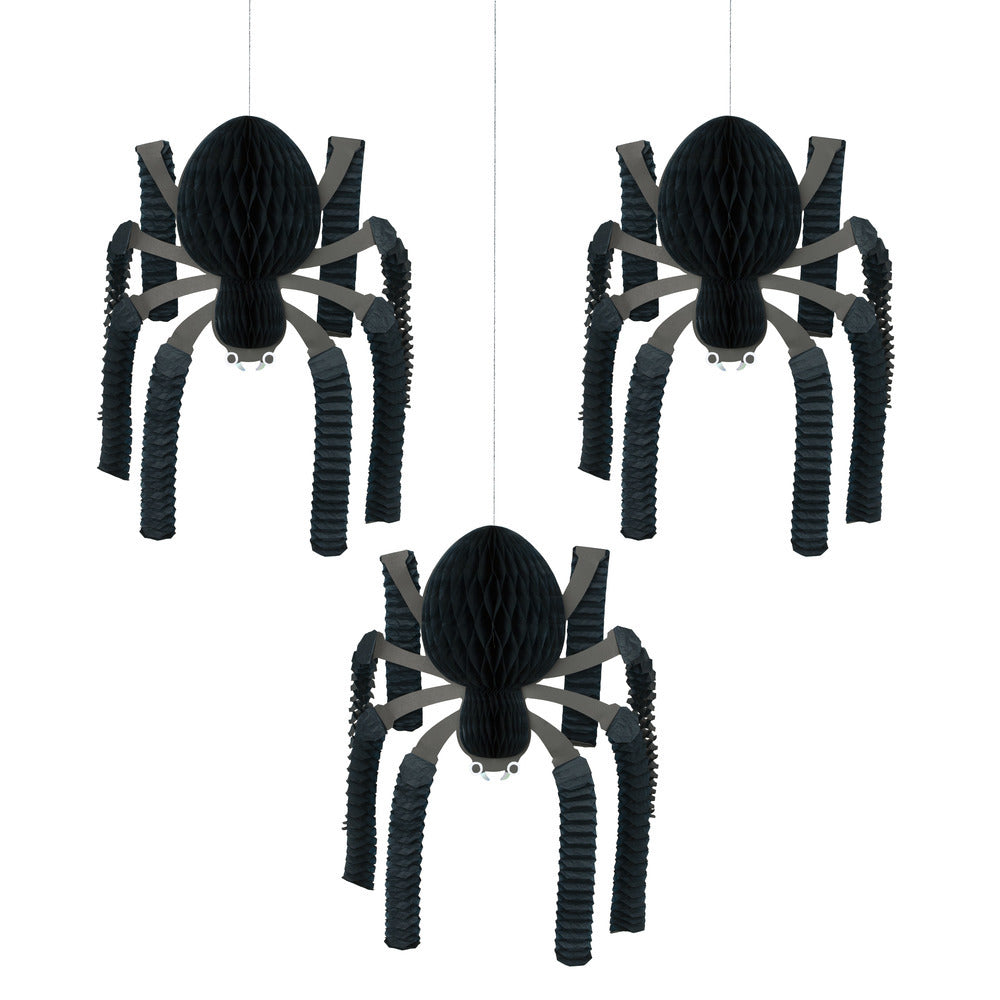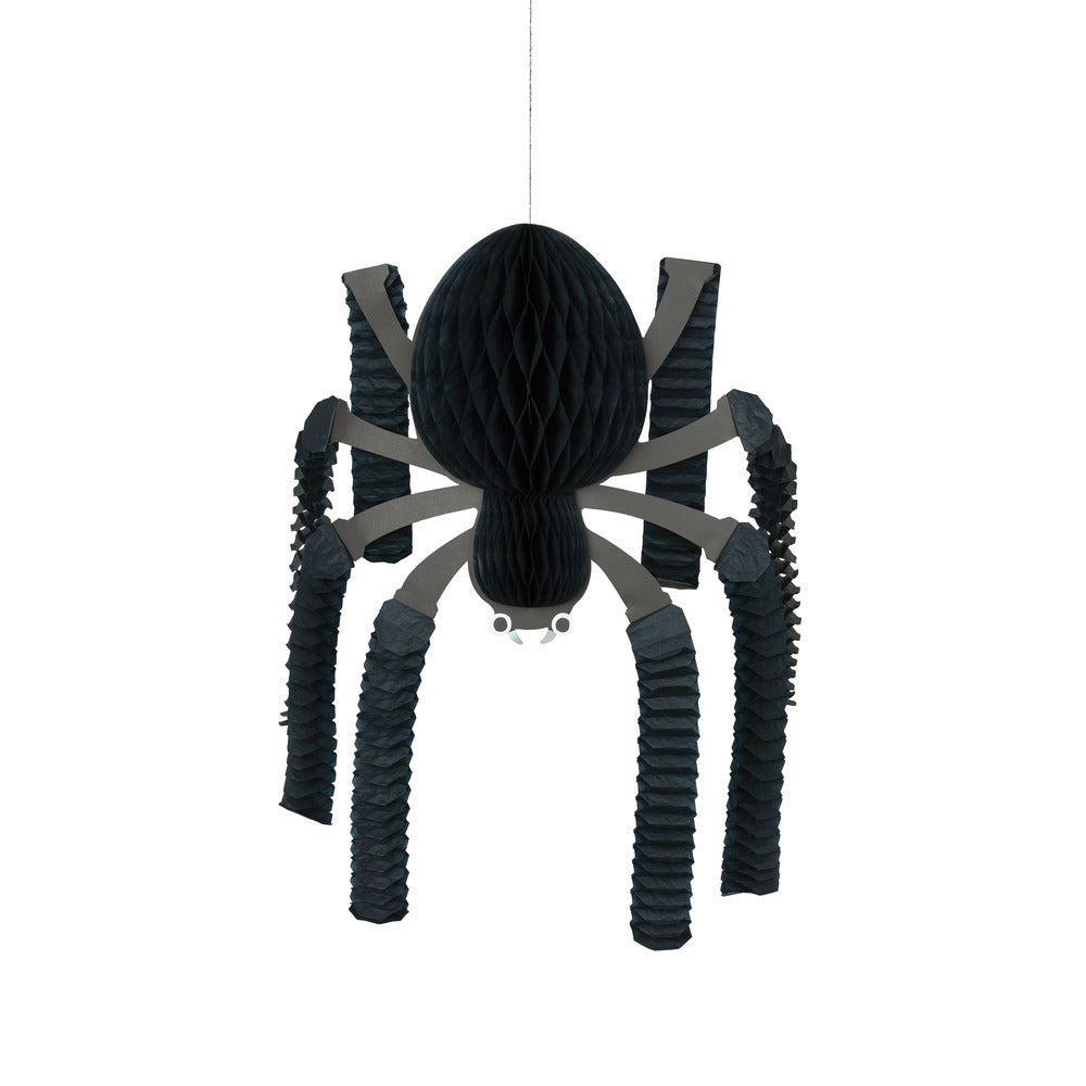Watch out, there's a spider about! But don't worry they have crafted these oversized spiders to be hauntingly fun Halloween decorations. Their big eyes, textured honeycomb bodies, silver foil pincers and long dangling legs, add just the right amount of eerie charm. Hang them in the porch, from trees, in windows, or from the ceiling, for a spine-tingling effect.