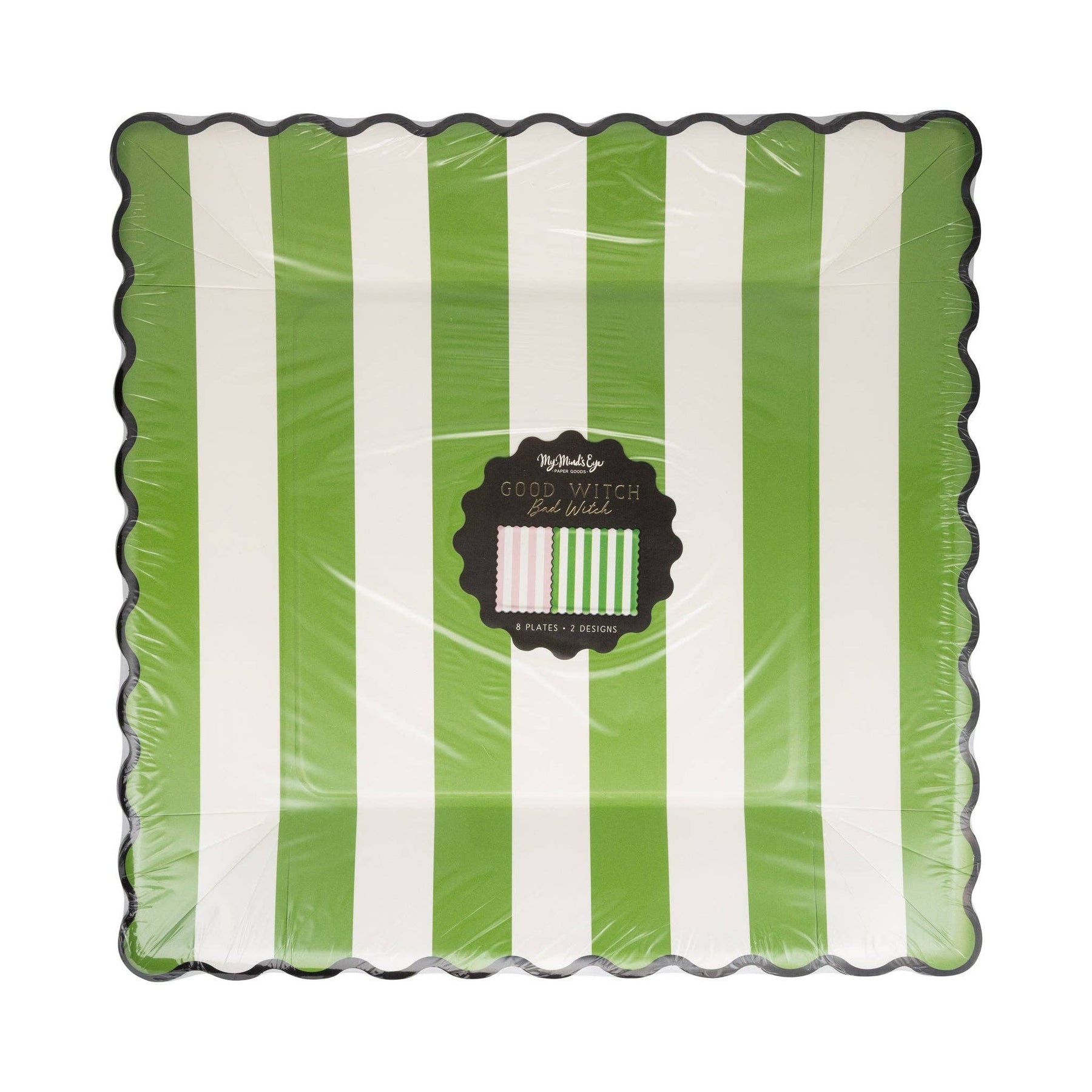 Bring a splash of fun to your Halloween party with these lively 11" plates adorned in bright pink and green stripes! Ideal for spooky festivities, this cheerful set brightens up your table setting. Combine them with other Halloween décor for a colorful, festive vibe that will delight your guests. Get ready to dance the night away with a monster mash!