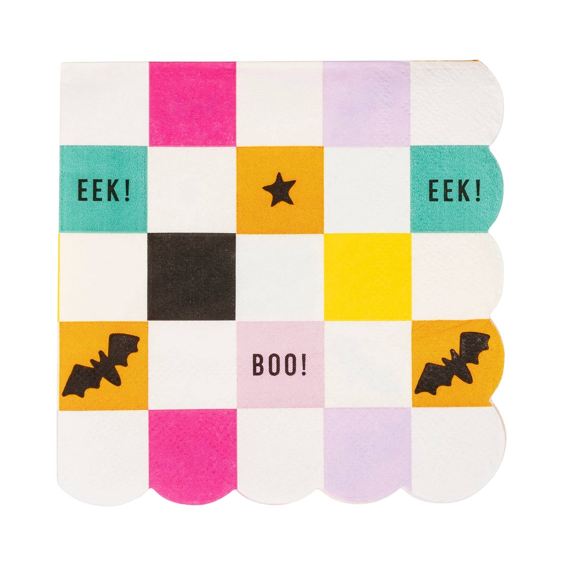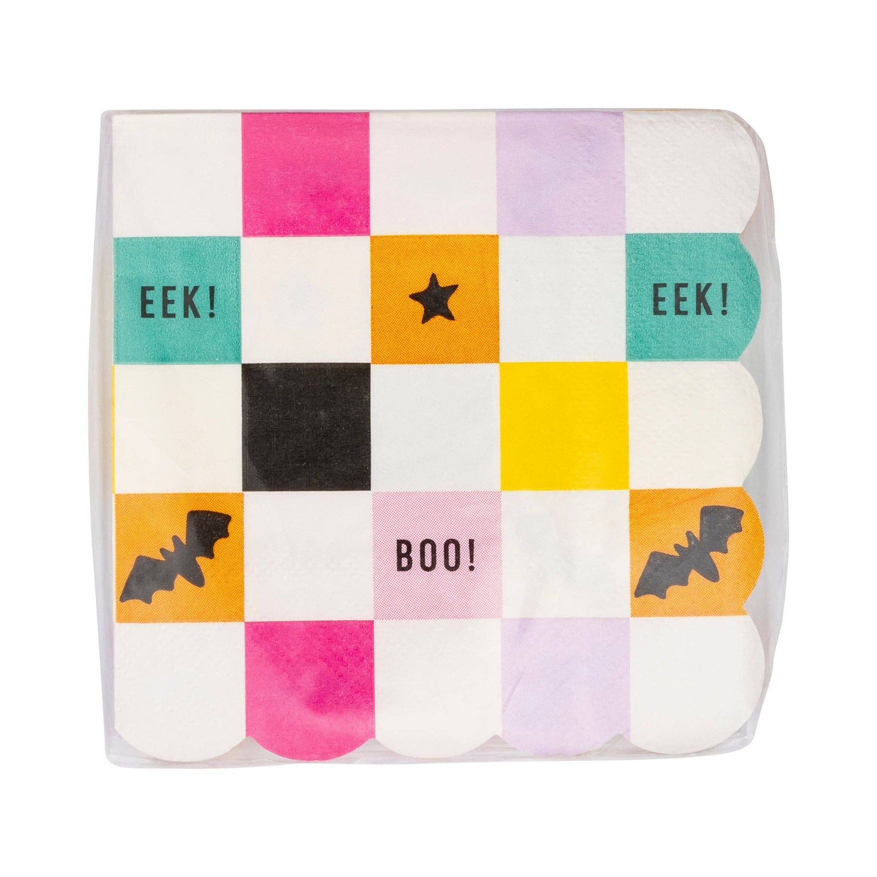 Add a touch of spookiness to your Halloween party with our Halloween Checkerboard Scallop Cocktail Napkin! Perfect for any Halloween gathering, this napkin features a festive checkerboard pattern that will bring the fun to your drinks.