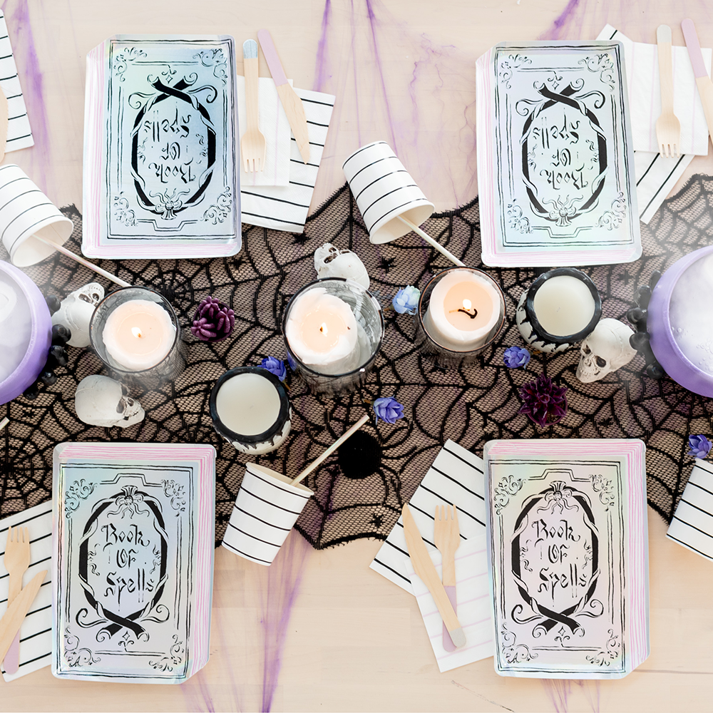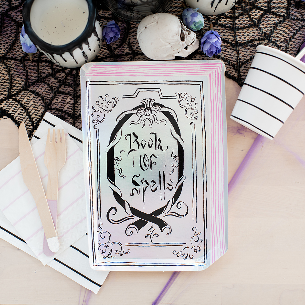 Get ready to be "spellbound" this Halloween with our large 8 pack of Spellbound Plates. These plates feature a unique holographic design in shades of purple and grey. Perfect for adding a touch of magic to your Halloween party.