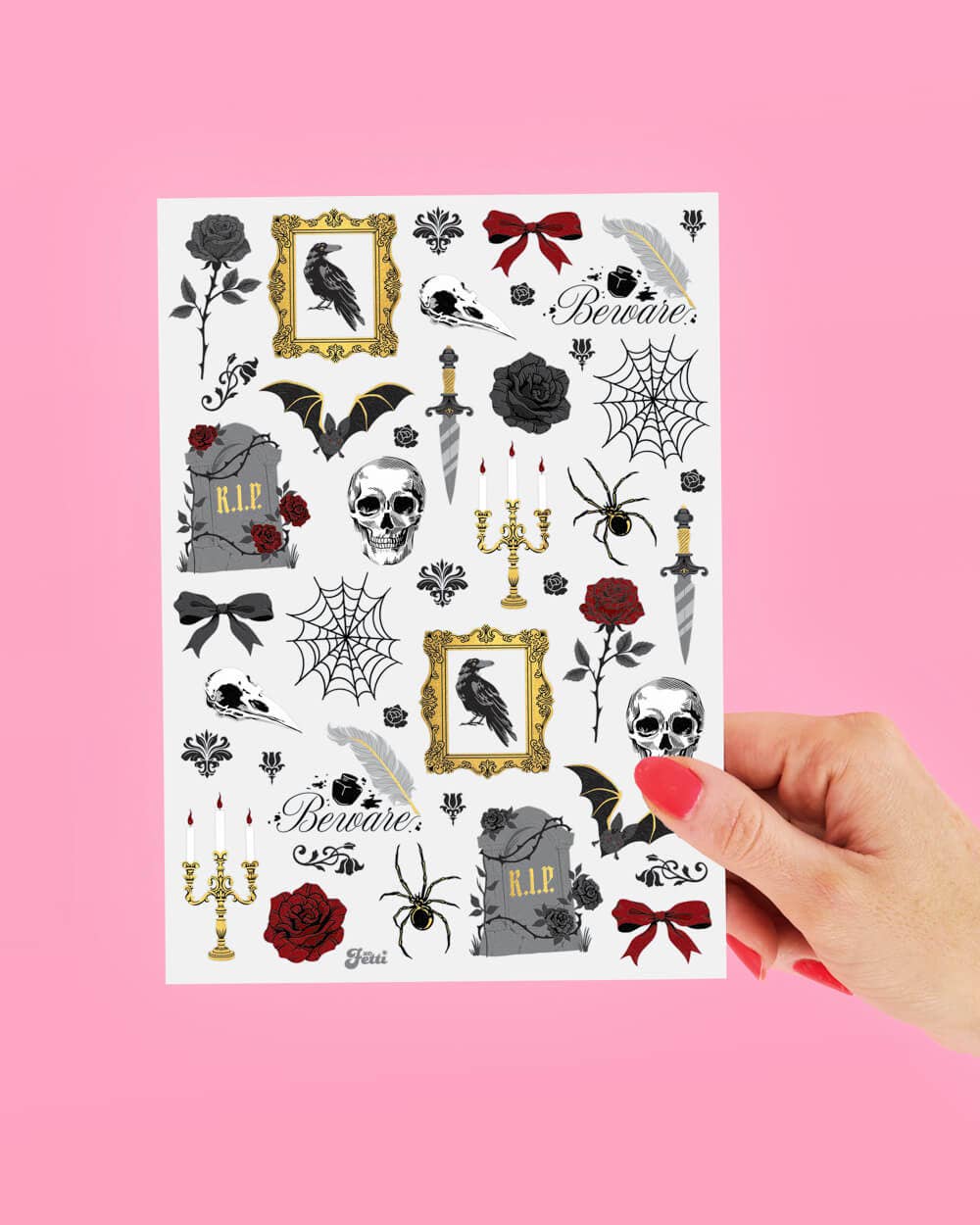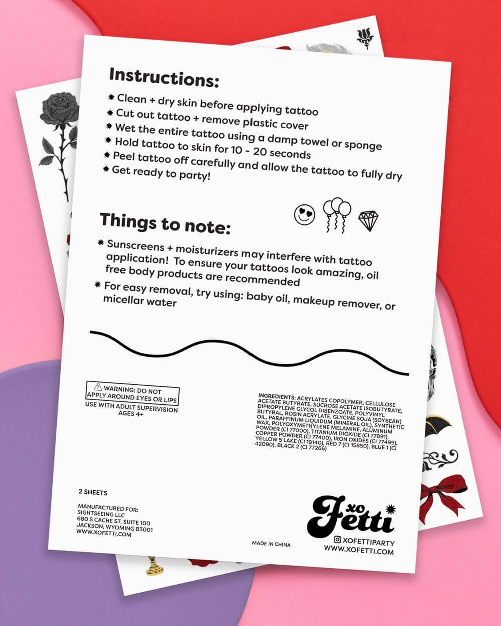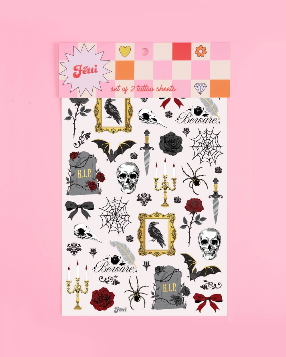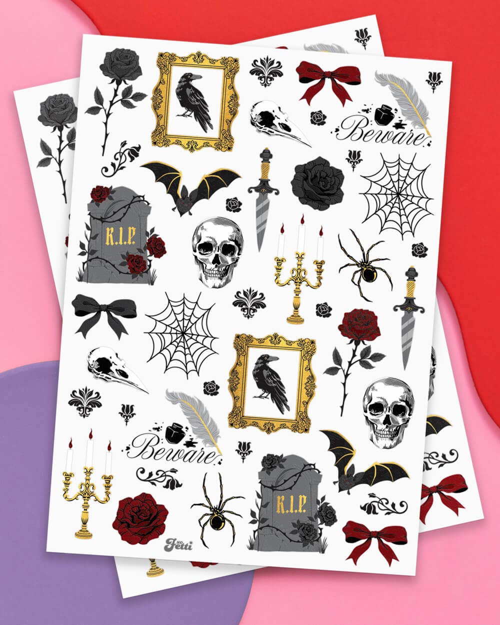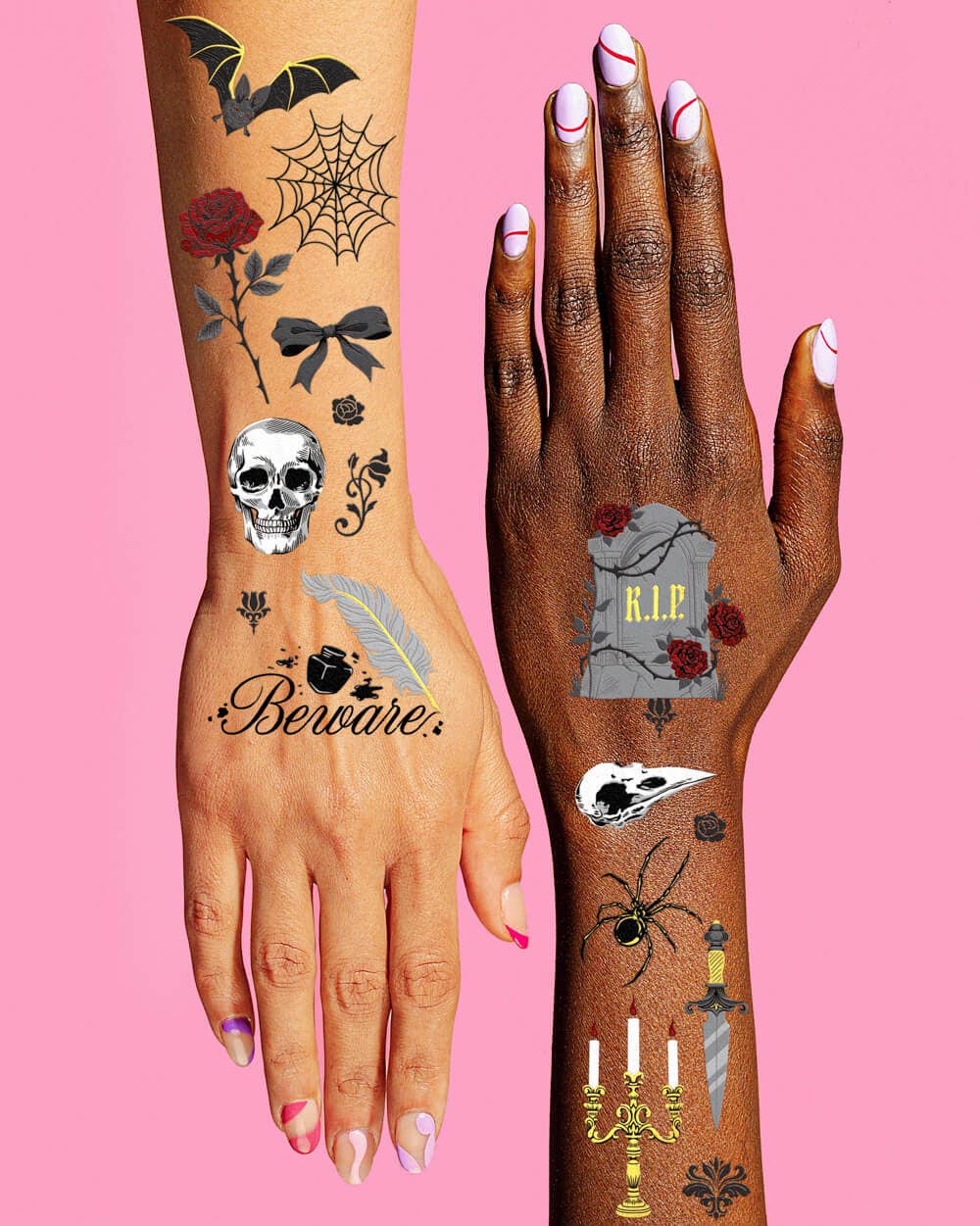RIP to the old you 🥀|| You're here for a haunting, but that doesn't mean skipping out on roses, bows, and gold flair. These tats are perfect for your midnight séance or your next darkly dreamy party. Look good, even in the afterlife.