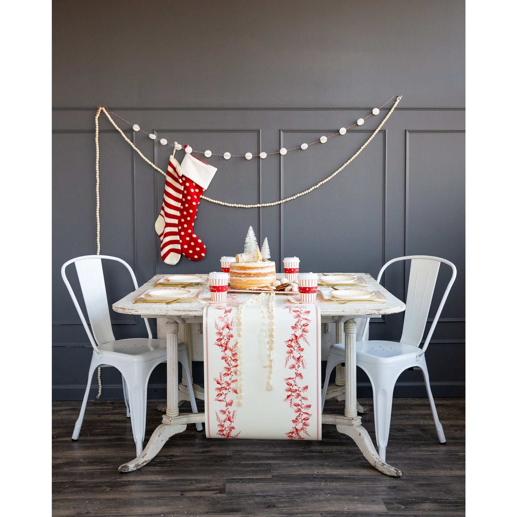 This holly table runner is the perfect way to take table décor off your plate this holiday season. This timeless red and cream vintage inspired pattern is a perfect reminder of Christmas dinner at grandma's. Make new memories with this classic Christmas design, which is sure to set the right backdrop for a festive dining experience.