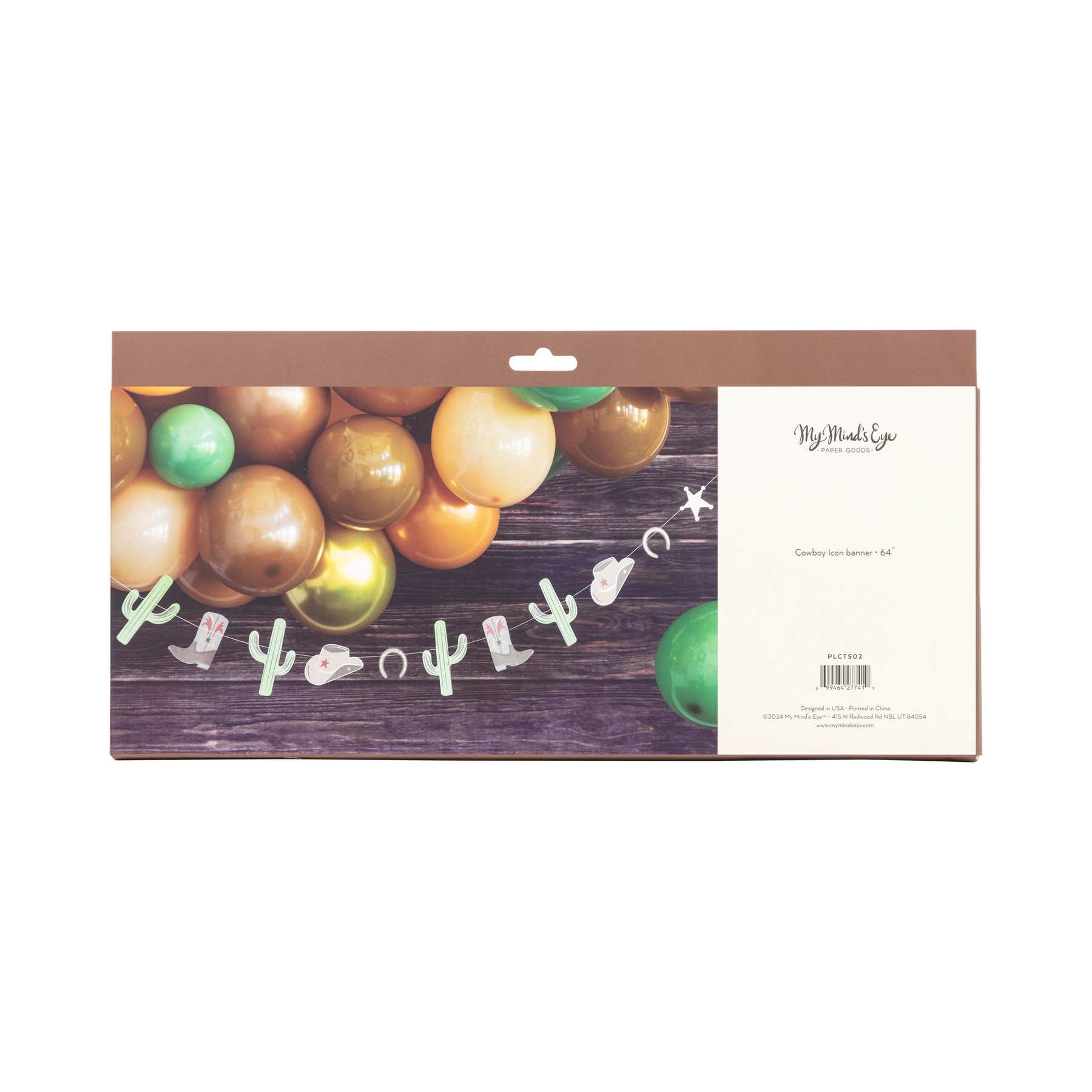 Saddle up for a hoedown with our Cowboy Icon Banner! Wrangle up some fun with playful cowboy icons. Perfect for adding a quirky touch to any celebration, this unique party accessory will have you saying "yee-haw" all night long!