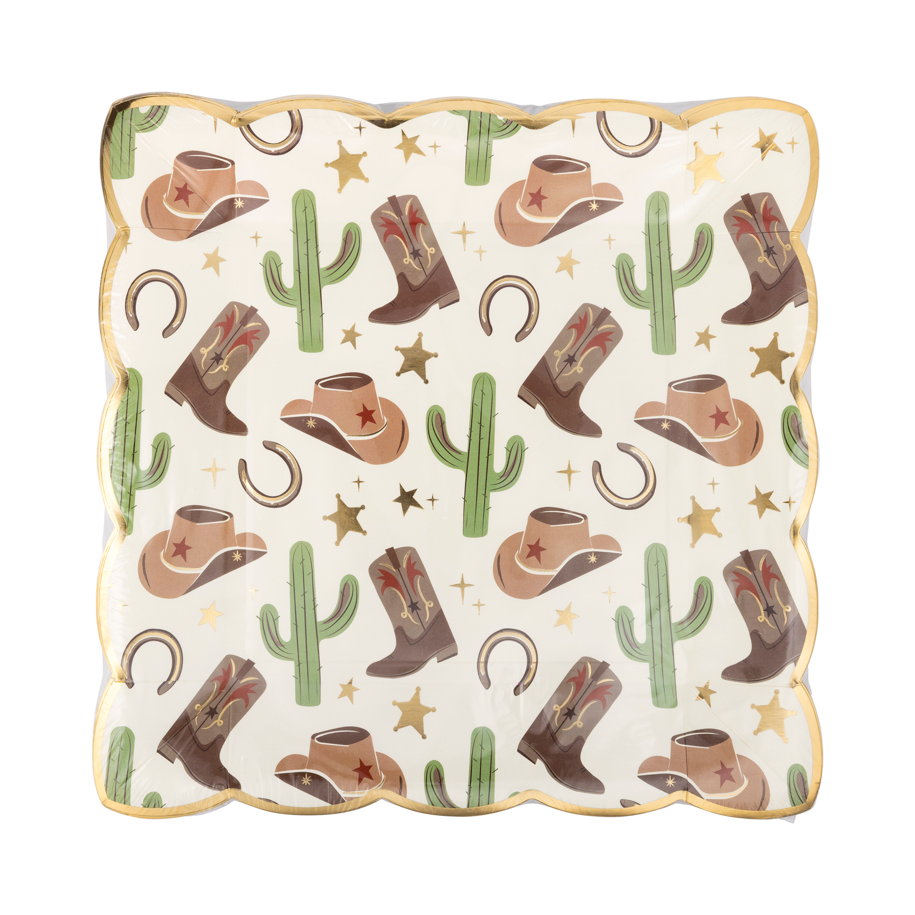 Yeehaw! Get ready to wrangle up some fun with the Cowboy Scattered Icons Plate. Perfect for your next cowboy themed party, this playful paper plate features whimsical icons that will add a touch of charm to your gathering. Serve up some delicious grub and let the good times roll!