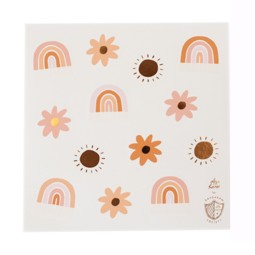 Featuring the prettiest boho colors and shiny gold foil, these stickers are totally made of peace and love! Plus they're perfect for decorating presents or used as party favors. A bohemian dream! Illustrated by Alyx House