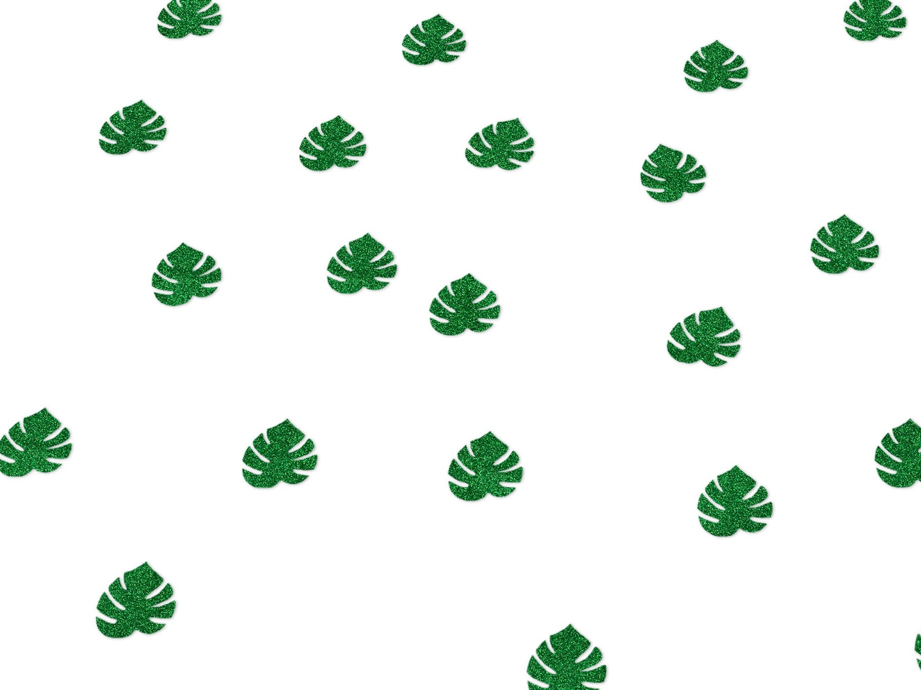 This listing is for 25 pieces of tropical leaf shaped confetti cutouts measuring 1 inches tall.The confetti is glitter color on one side and white on the back