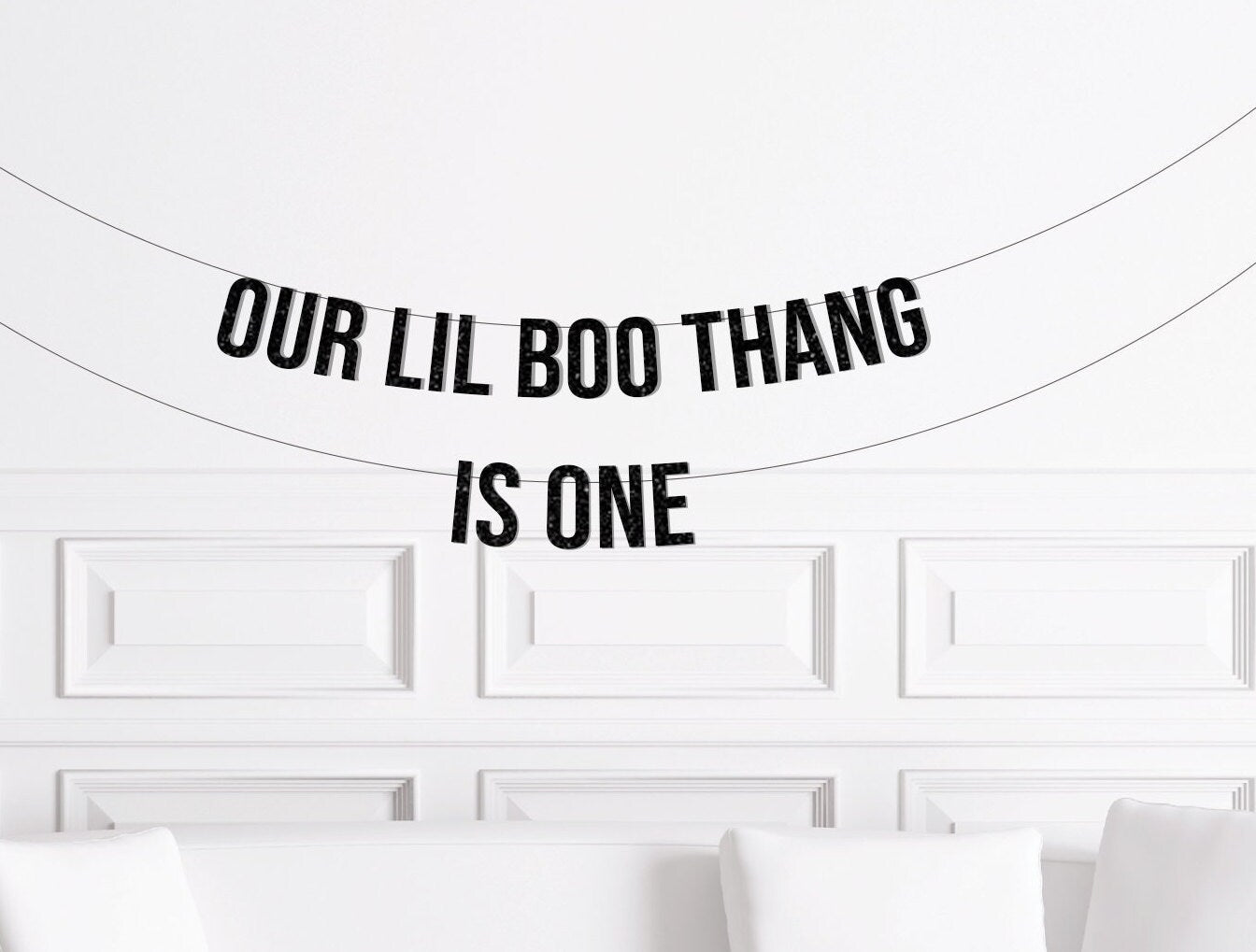 Halloween 1st Birthday Decorations, My Little Boo Thang, Our Lil Boo Thang is One Banner, October First Birthday