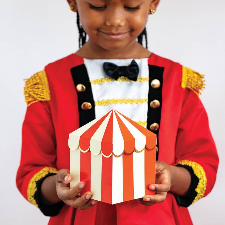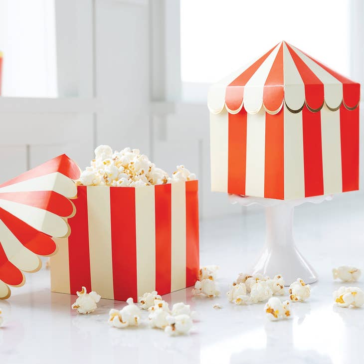 This carnival tent treat box is sure to make everyone a winner! The perfect parting gift for your party guests, this favor box is super roomy, making it easy to pile carnival candy, temporary tattoos and sticker sheets, and mini prizes high! Just like a big top tent, this treat box is inspired by the fun and excitement of the carnival.