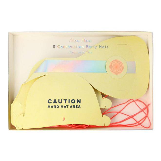 Forget boring party hats for your special celebration! These Meri Meri construction hats are guaranteed to excite your party guests. They are crafted from card with the words "Caution. Hard Hat Area"