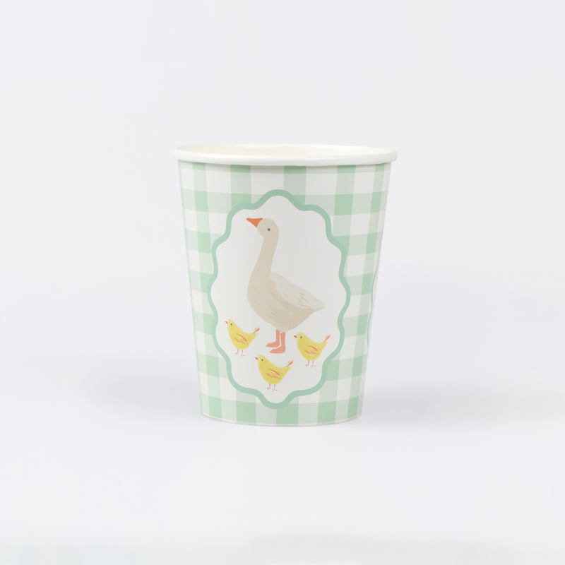 Our Little Animals range is brimming with storybook charm, inspired by vintage children's books, 1940s animation and classic floral wallpaper. These paper cups feature soft watercolor animals, including geese, fawns, rabbits, squirrels and chicks, fawns; teamed with a timeless gingham design, to bring gentle beauty to your party table. Perfect for hot and cold drinks for young birthdays or baby showers.