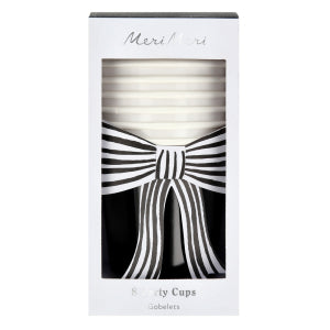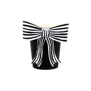 Thrill little witches and wizards with an elegant, eerily decorated Halloween party. These black cups, adorned with chic striped bows, add a spellbinding touch to your party drinks. The classic black-and-white design pairs beautifully with the rest of your Halloween tableware and decorations.