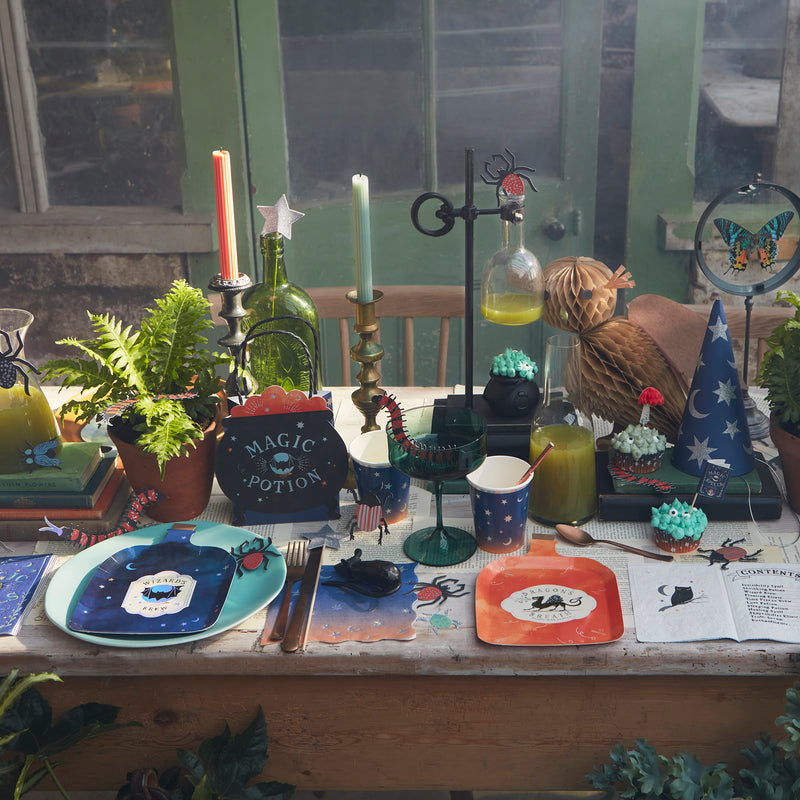 Add a touch of magic to your party with our Meri Meri Halloween Making Magic Potion Bottle 9" Paper Plates! These unique plates look just like potion bottles, making them perfect for wizard and witch parties, Halloween parties, or any celebration in need of a touch of enchantment. Comes in a convenient 8 pack.