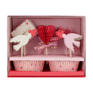Make sugary treats look even sweeter this Valentine's with our special pink and red cupcake kit, with a charming Victorian feel. It features romantic icons and ribbons for the cake toppers and love-heart and flower cupcake cases. All beautifully packaged in a box with a pretty design. Place them on a platter as a mouth-watering Valentine's centerpiece or serve them to delight your party guests.