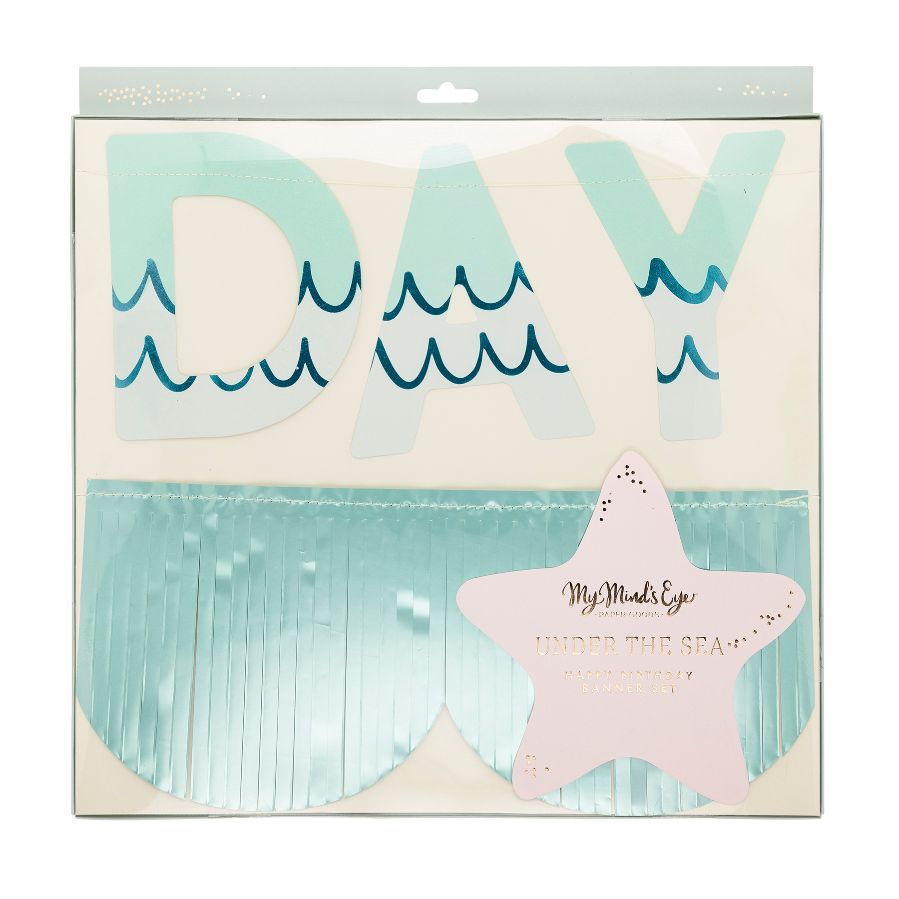 Transform your birthday bash into a whimsical sea adventure with our Happy Birthday Banner Set! This banner set brings the ocean to your party, featuring a jubilant "Happy Birthday" message and a playful mylar fringe banner. Let your inner mermaid or merman shine with this one-of-a-kind banner set!