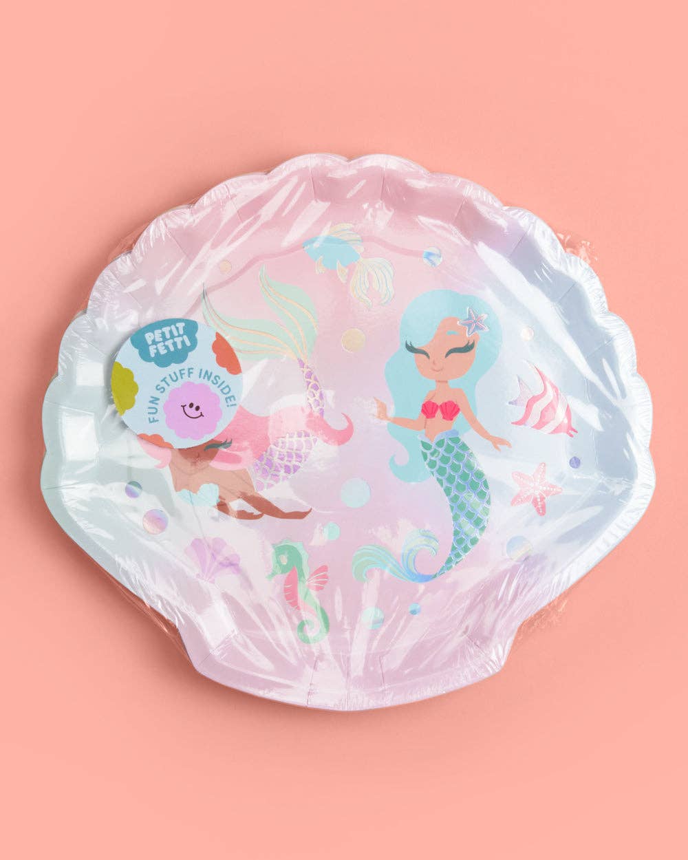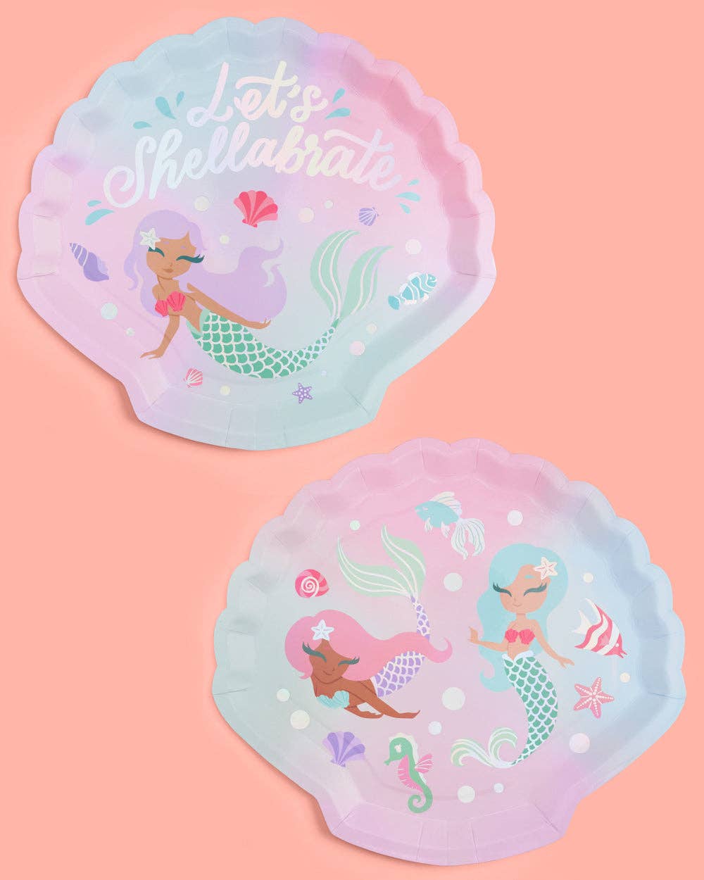 Mermaids have more fun 🐚 Have a splash at your next shellabration with our iridescent foil party plates! Featuring 2 designs you'll flip your fins over making you feel like a true mermaid princess.