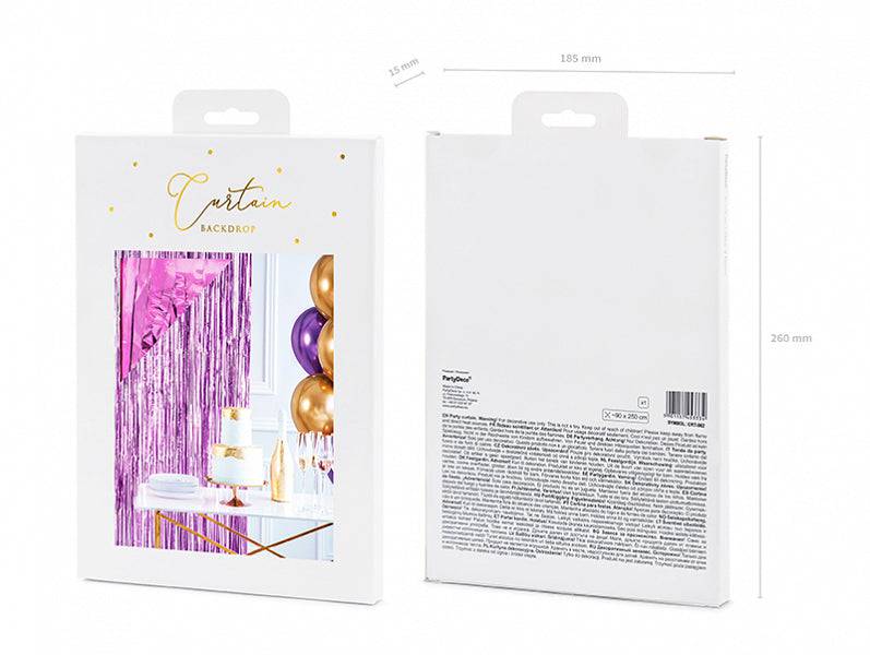 A gorgeous backdrop to a fabulous party our 'Purple Metallic Party Curtain' will have everyone in the party spirit. Guests will love using this as a backdrop to their photos - memory's to treasure forever. Hang this curtain on walls and doorways for a fabulous decoration.