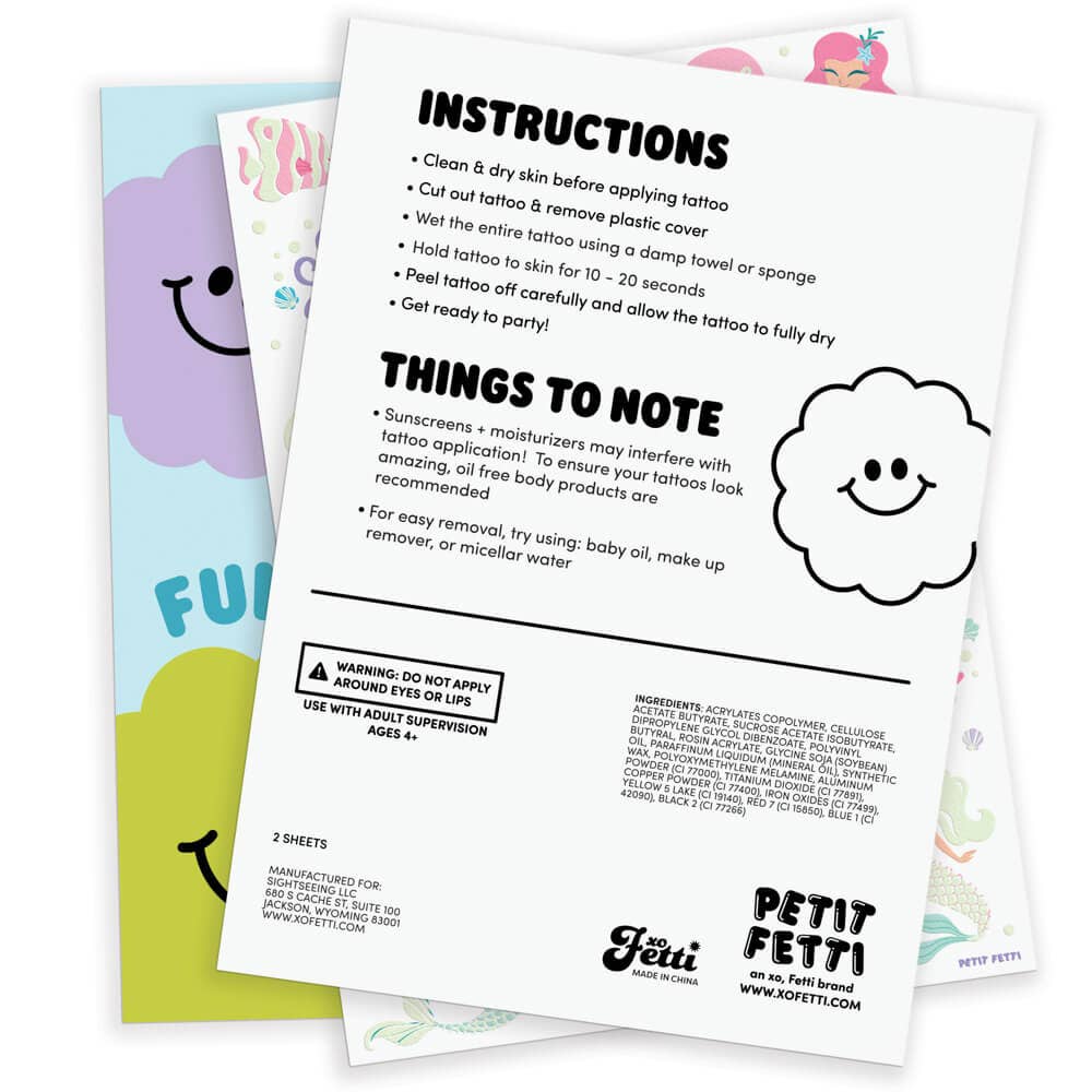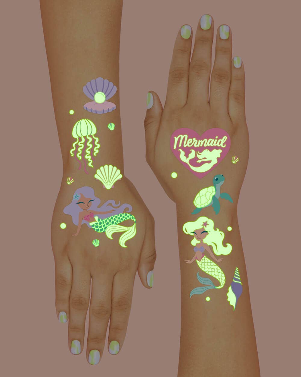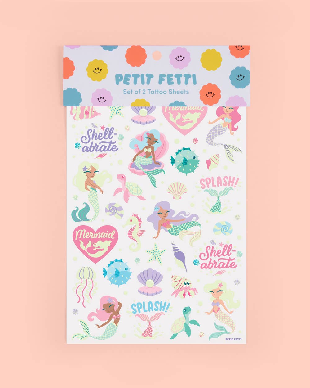 Make a splash with our mermaid temporary tattoos at your next shellabration! Dive into fun with designs that will have you flipping your fins and feeling like the ultimate mermaid princess.