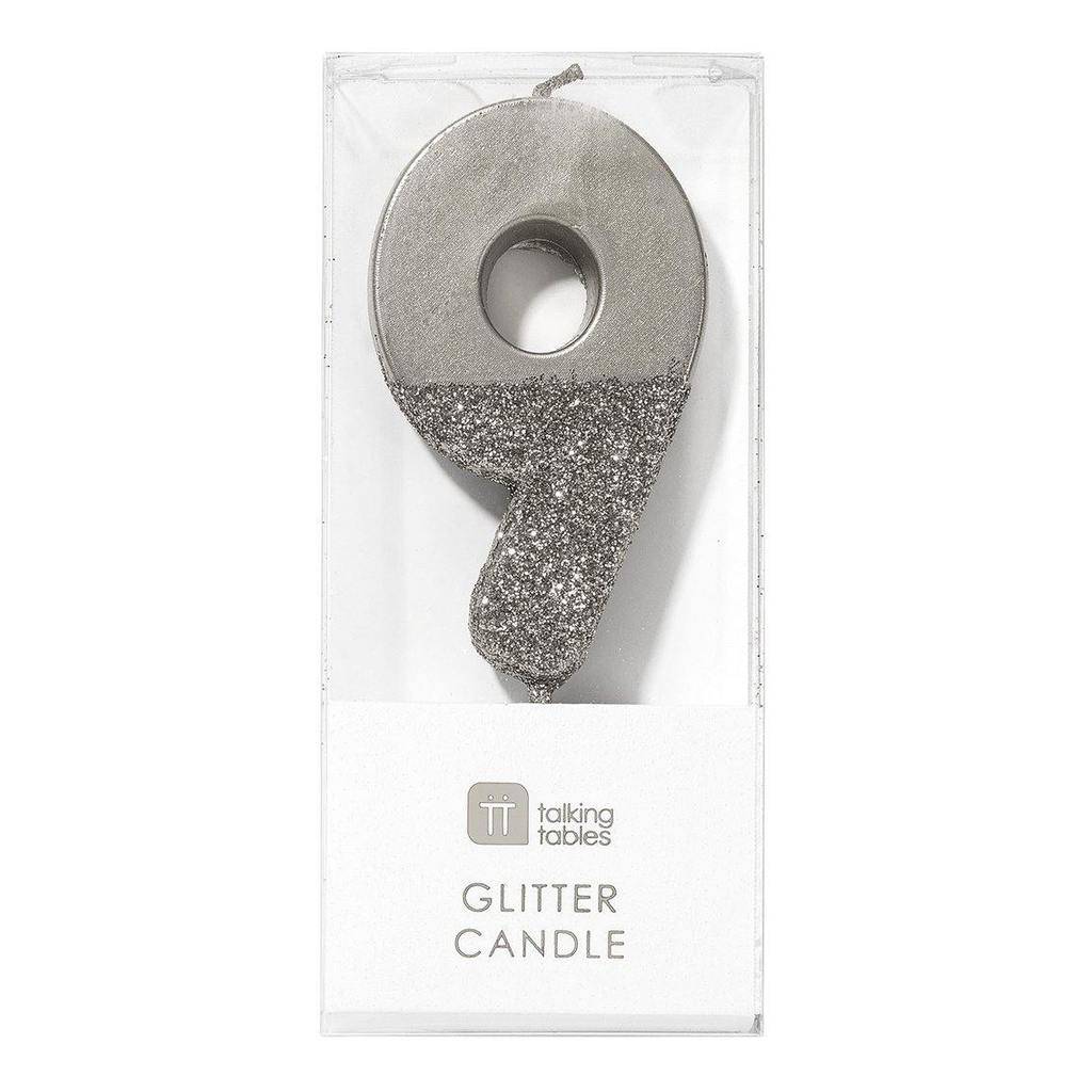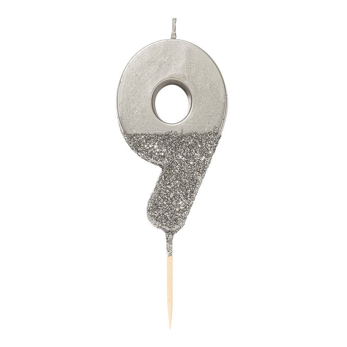 Birthday Number 9 Candle Silver Glitter Dipped S1088