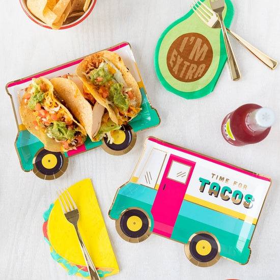 Taco-bout a cute napkin! This fun taco napkin will spice up any fiesta or Taco Tuesday and pairs perfectly with our taco truck plate. Can you tell we are taco-lovers around here? 3 sets makes one wholesale pack
