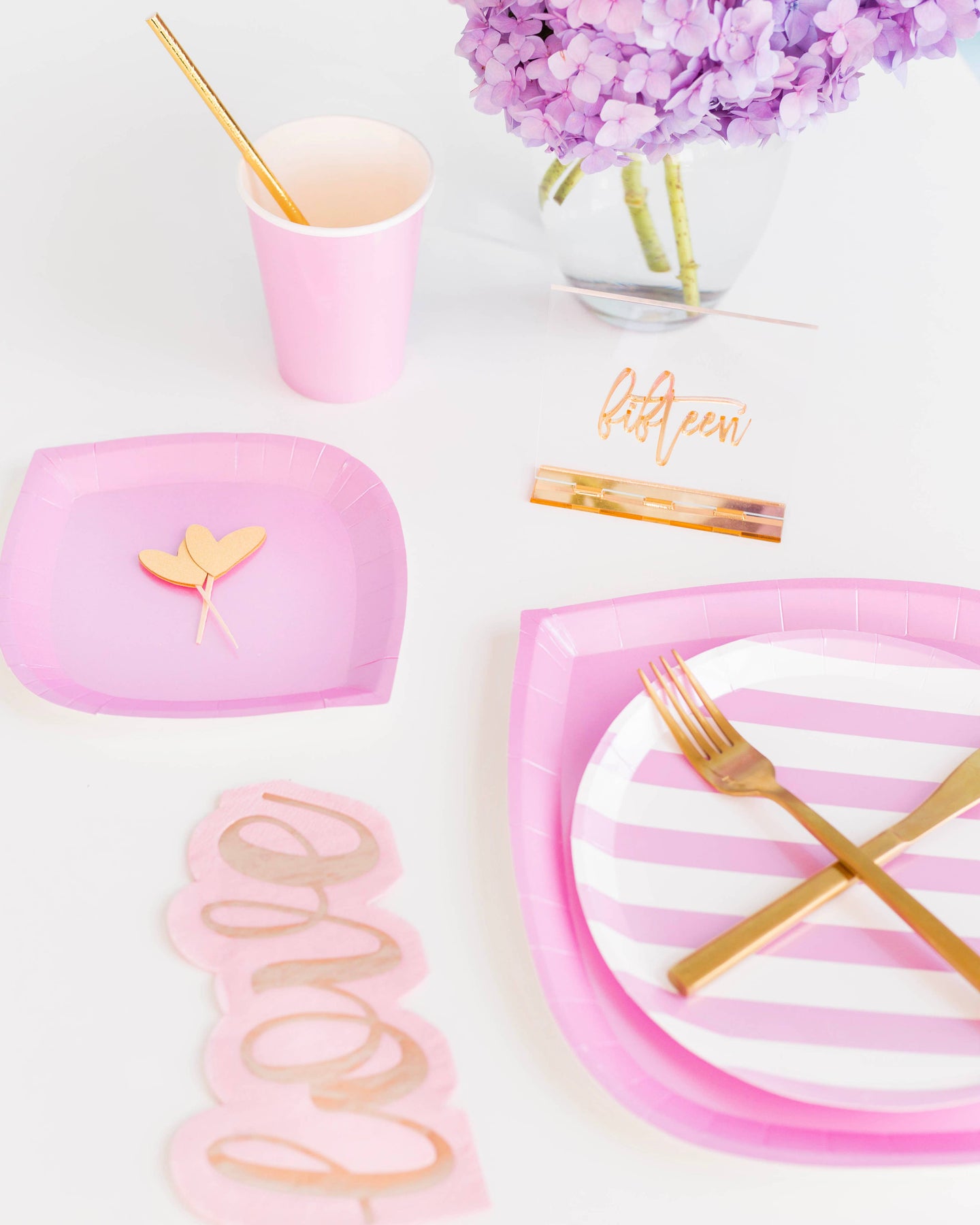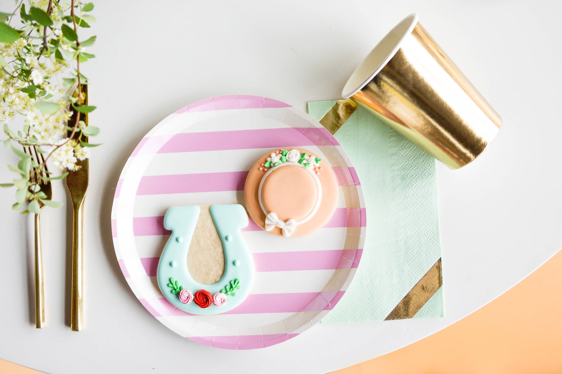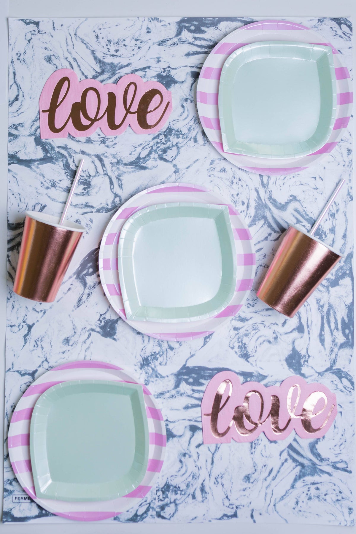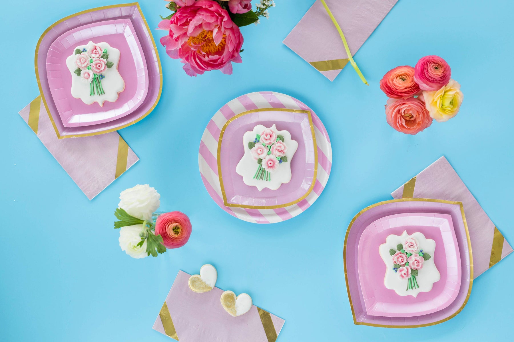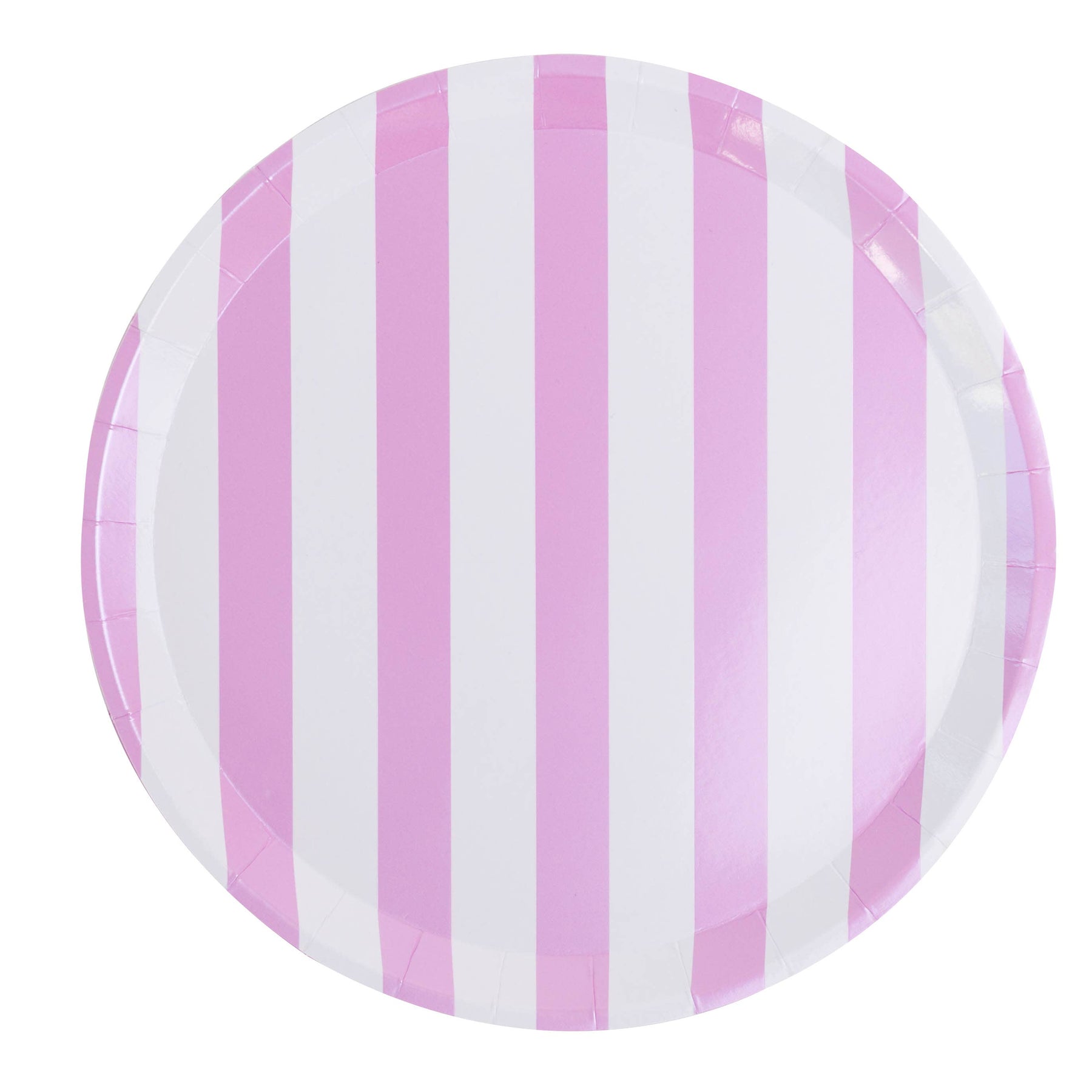 Impress your guests with this Jollity & Co. Candy Stripe dinner plate - a must-have for any party! Get ready for a fun and whimsical experience, just like being in a candy store!