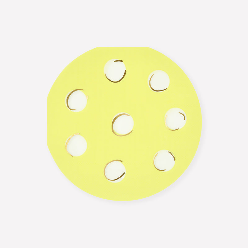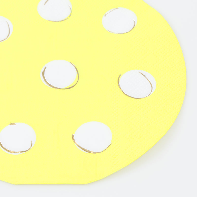 Bring the excitement of the court to your celebration with these charming pickle ball shaped napkins. Featuring a striking neon yellow hue accented with gleaming gold foil details, this 16-pack adds instant personality to any gathering. Perfect for sports enthusiasts and party planners alike, these versatile napkins work beautifully alongside appetizers, desserts, or full meals. Whether you're hosting a birthday bash, sports-themed event, or casual outdoor get-together, they transform your tablescape into a spirited, game-ready display that guests will love.
