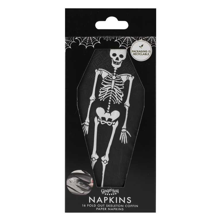 Dare to take a look inside? It's time to up your tableware game with our pop out skeleton coffin napkins. With a stylish and unique design, your guests will be sure to be in for a fright with these fun napkins.