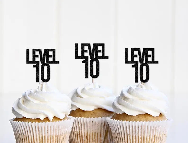 Custom Level 5, 6, 7, 8, 9, 10, 11, 12, 13 Cupcake Toppers, Video Game Birthday Party Decorations, Gamer Party Supplies Decor, Computer