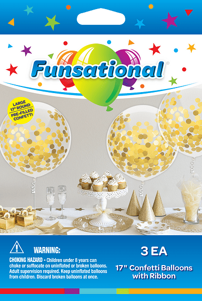 Celebrate your birthday, engagement, or just-because with our 3 Pack of Confetti Balloons! Each package contains 3 balloons, each filled with gold confetti.
