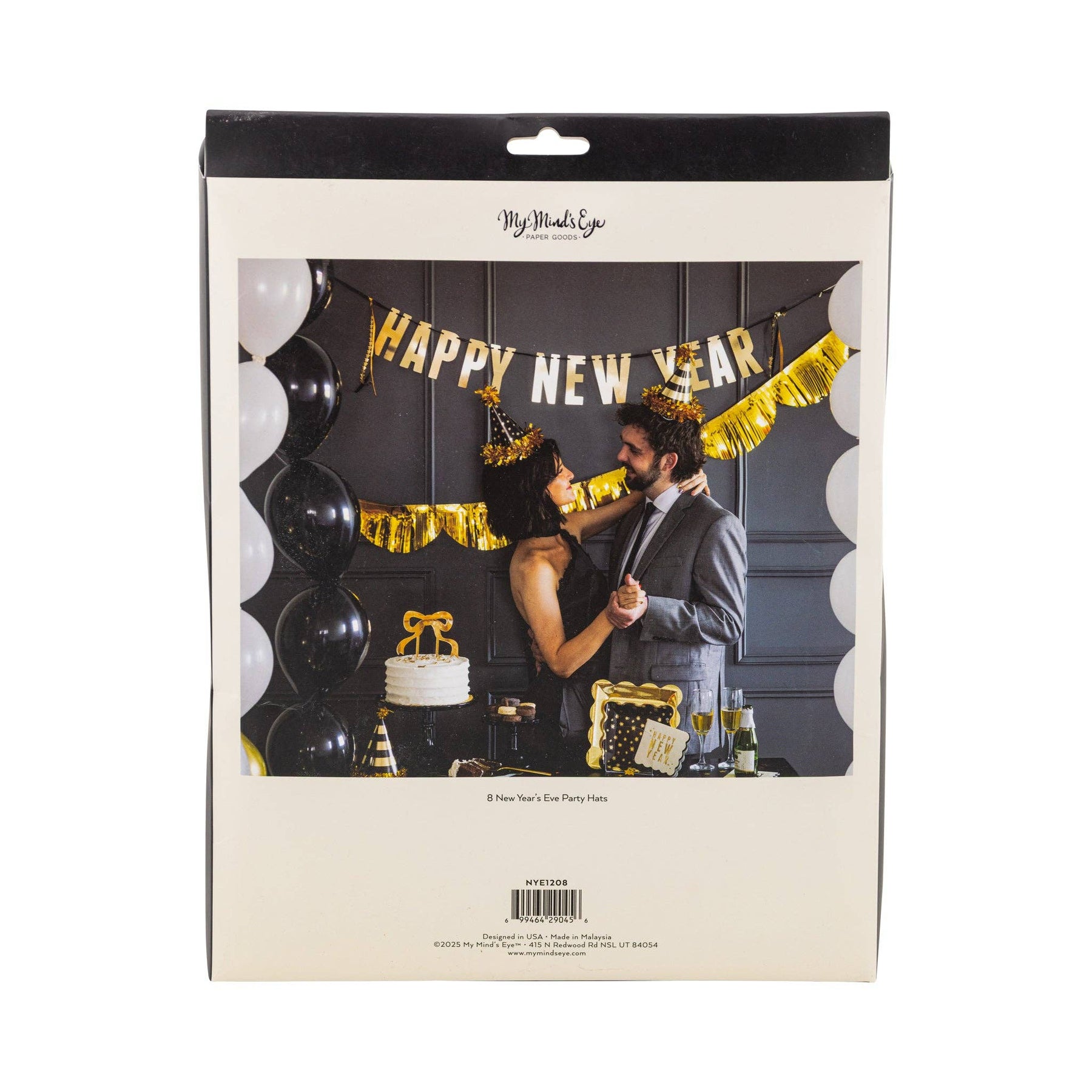 Kick off the countdown with these chic Black and Gold New Year's Eve Party Hats! Made to bring a stylish and festive flair, they're just right for any NYE bash. Keep the fun going strong as you ring in the new year with flair and pizzazz.
