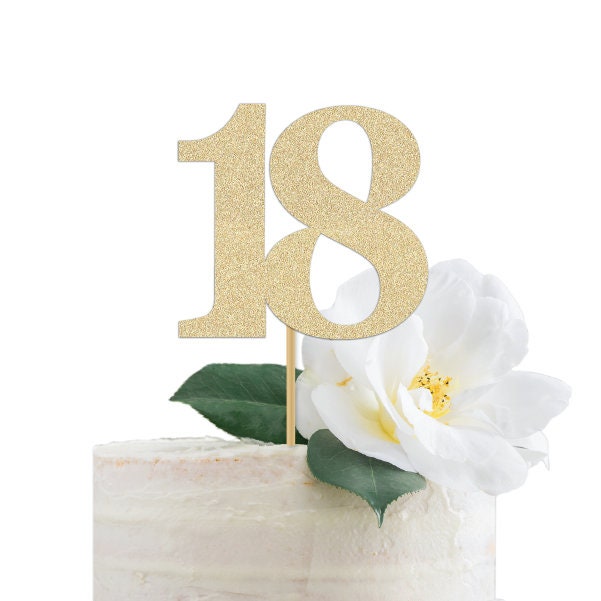 This is for one 18 glitter paper cake topper in the color of your choice. One side is glitter the back is white. Each piece is adhered to one bamboo skewer.