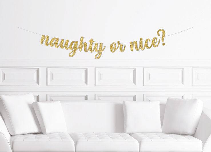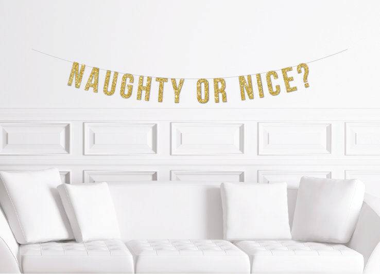 This listing is for one paper, glitter block letter banner of the popular Christmas phrase: NAUGHTY OR NICE?