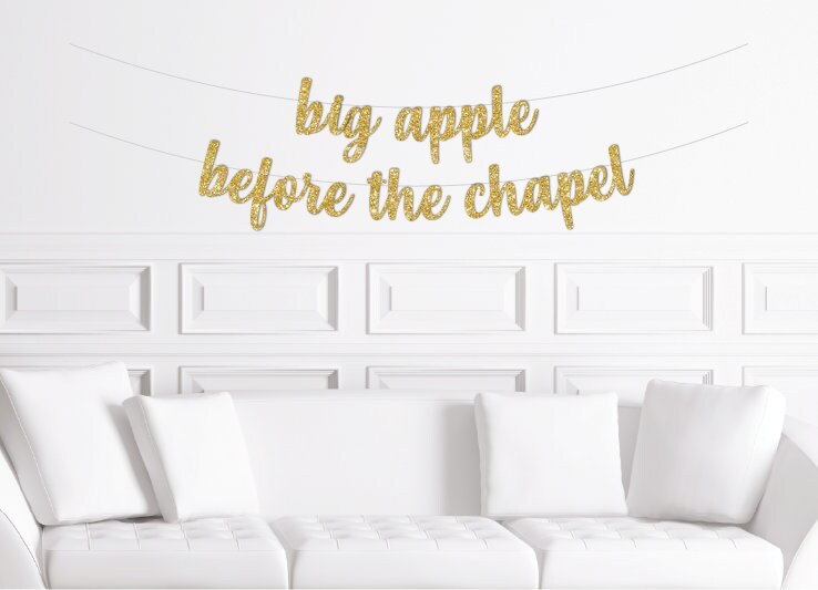 This listing is for one custom personalized paper, glitter banner of the popular New York destination bachelorette phrase:BIG APPLE BEFORE THE CHAPELSize: 5" tall letters