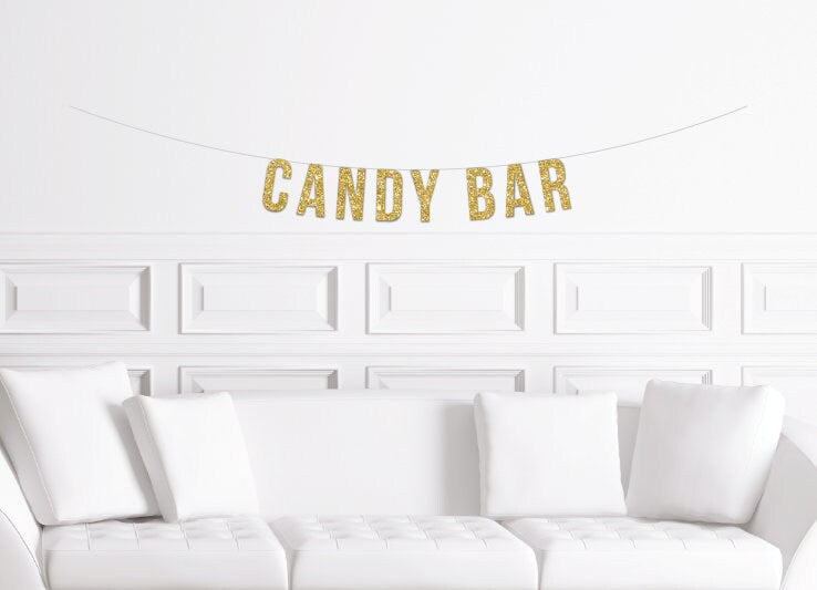 Candy Bar Banner / Gold Glitter Dessert Table Sign / Bridal Shower Banner/ Wedding Candy Bar Banner / Sweets Table