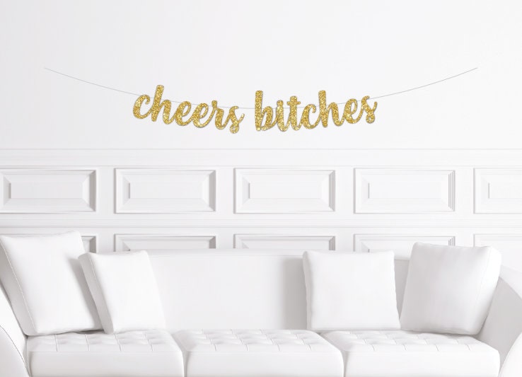 Cheers Bitches Cursive Banner / Gold Glitter Script Bachelorette Sign / Women's Birthday Party Banner / Girl's Weekend Decoration / Decor