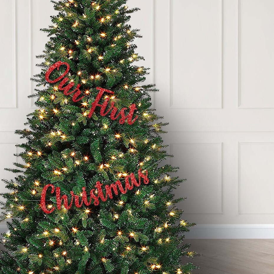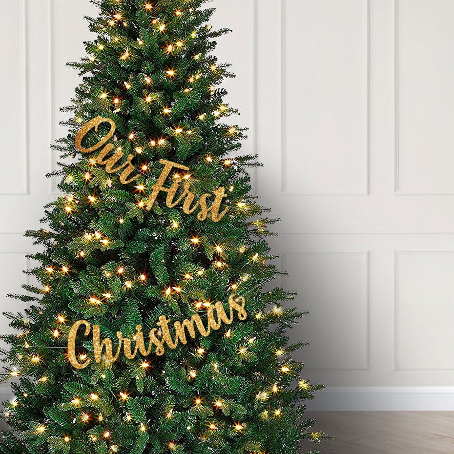 Celebrate the season with our set Our First Christmas Banner decorations. Decorate your tree with this glittering gold paper banner featuring a message of love to cherish for years to come. The perfect gift for newlyweds, engaged couples, or anyone in search of holiday cheer.