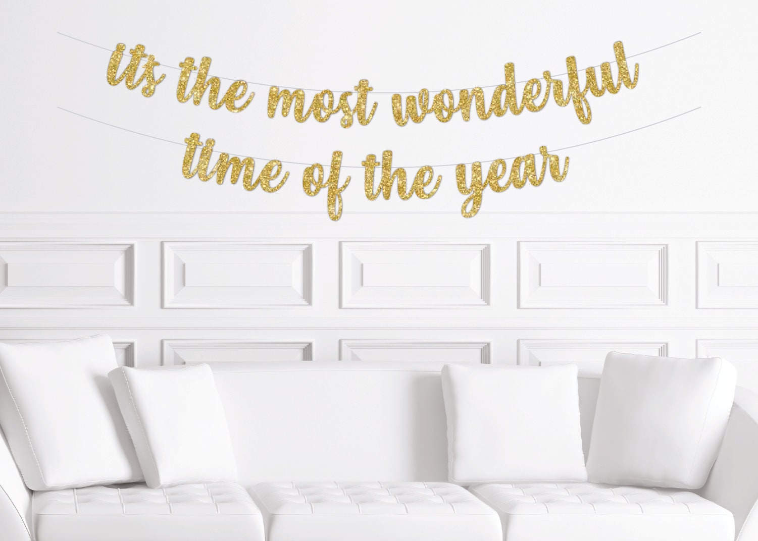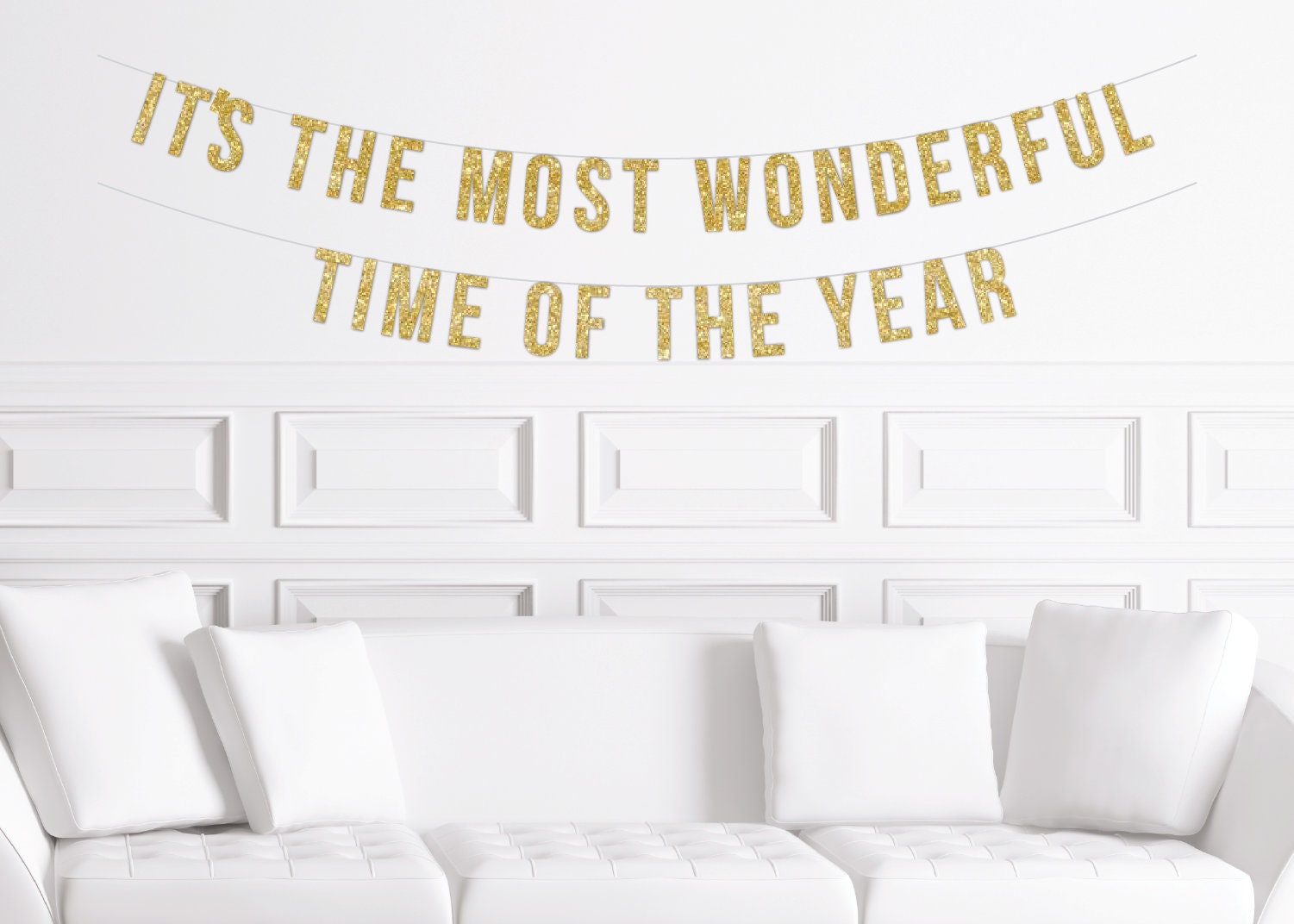 It's The Most Wonderful Time of The Year Banner, Christmas Home Decor, Mantle Sign Gold Glitter, Boho Modern