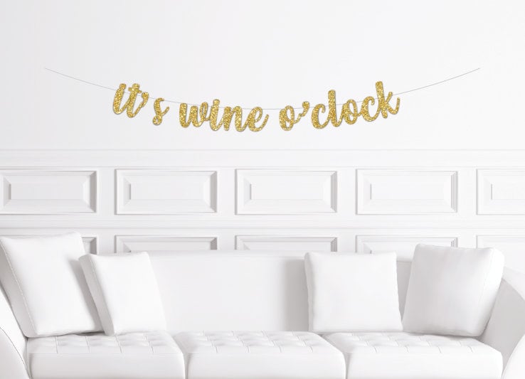 It's Wine O'Clock Cursive Banner / Gold Glitter Script Bachelorette Sign / Women's Birthday Party Banner / Girl's Weekend Decoration / Adult Birthday Decor
