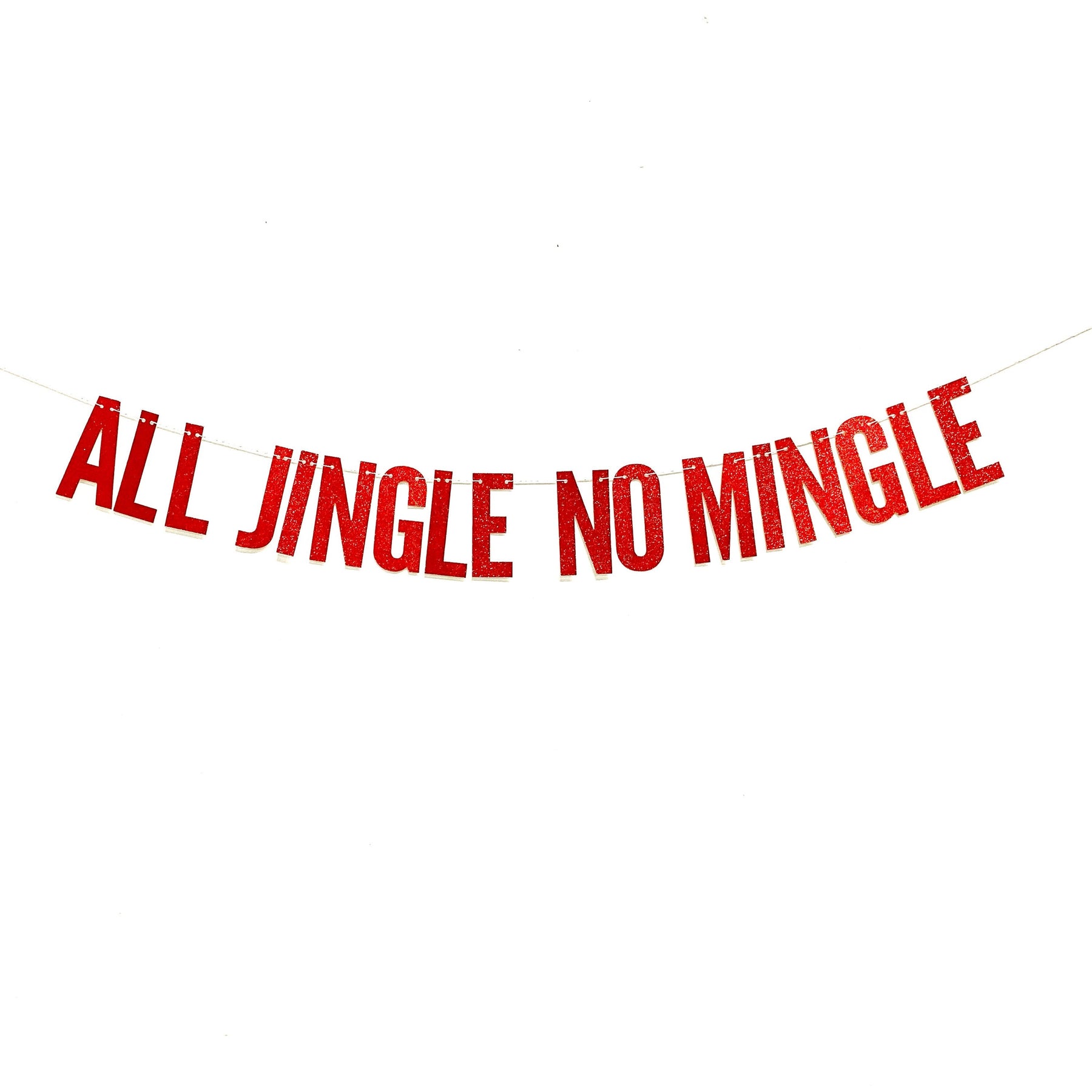 This listing is for one paper, glitter script banner of the popular Christmas party phrase:ALL JINGLE NO MINGLESize: 5" tall letters