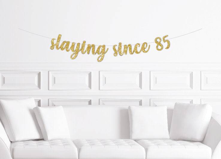 This listing is for one, paper, glitter script banner of the popular birthday phrase: