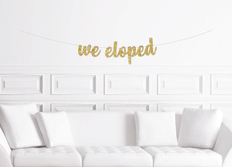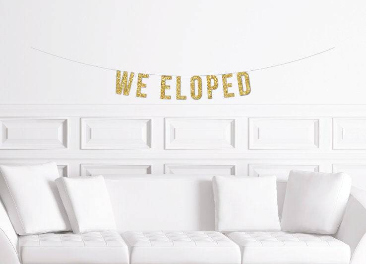 This listing is for one paper, glitter banner of the popular wedding elopement announcement phrase: