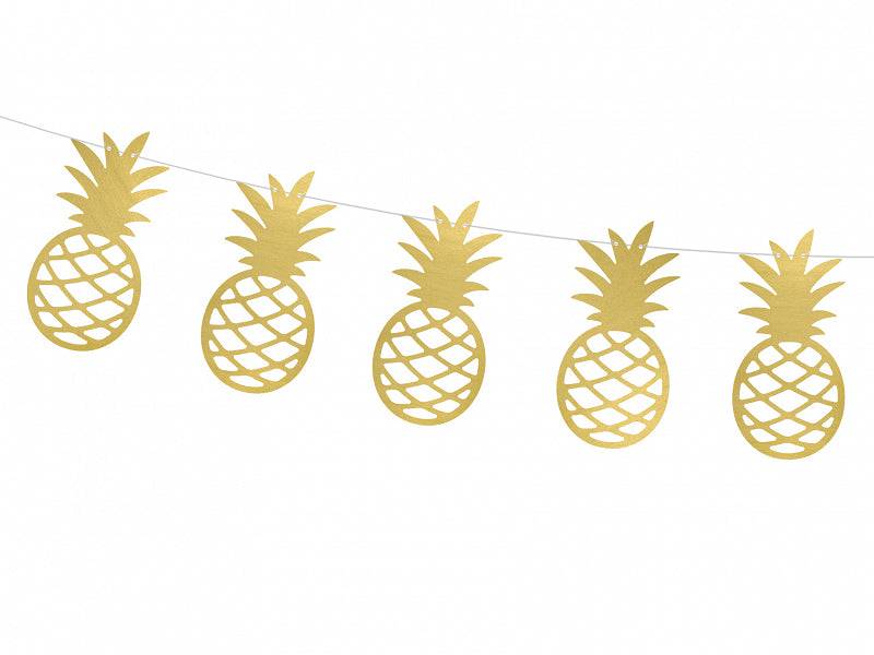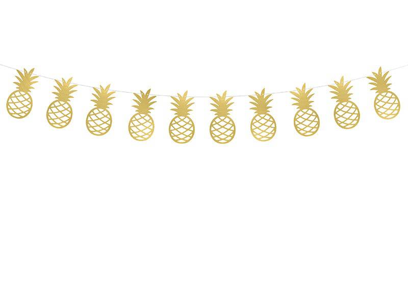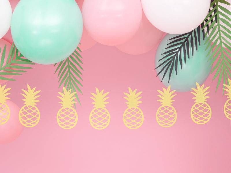 A pineapple garland is a must-have for any tropical party! This garland is perfect for hanging on your door, doorway, or mantle. The gold pineapple design is bright and adorable, and will set the tone for any Hawaiian party theme, birthday celebration or baby shower!