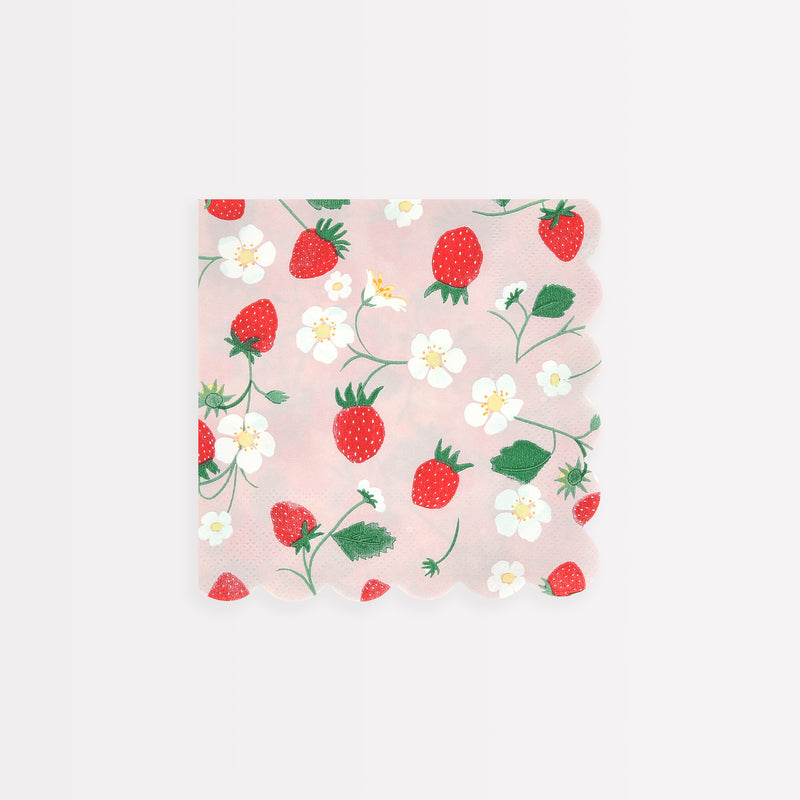 Get your summer vibes on with these sweet and playful Strawberry Pattern Napkins! Adding a touch of nature to your party has never been easier with these paper napkins featuring a stylish scalloped edge. Perfect for any outdoor gathering, whether it's a garden party, picnic, or even a tennis match.