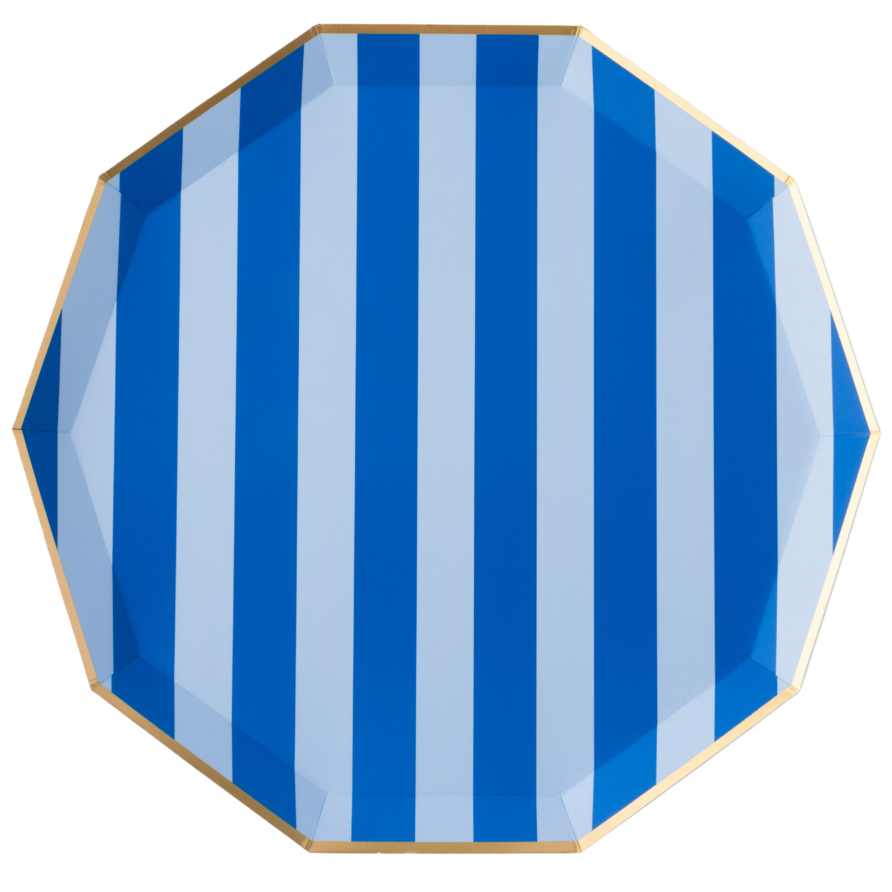 Make a splash at your next gathering with these striking large plates featuring a bold two-tone blue cabana stripe! Crafted from premium materials, they're the ideal choice for nautical adventures, holiday festivities, birthday bashes, and Hanukkah celebrations. These versatile striped beauties bring together playful style and refined elegance for any occasion.